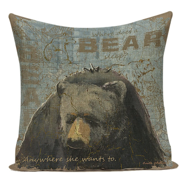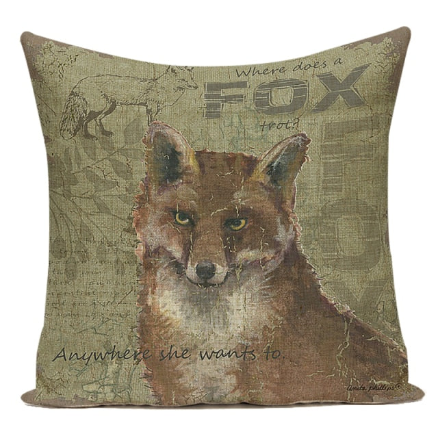 18″ Vintage Forest Animal Print Throw Pillow Cover