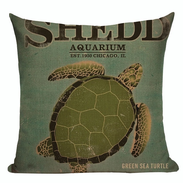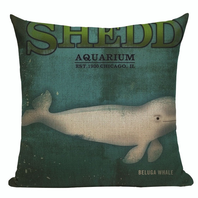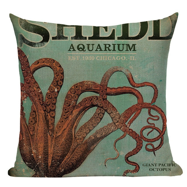 18″ Vintage Marine Sea Creature Print Throw Pillow Cover