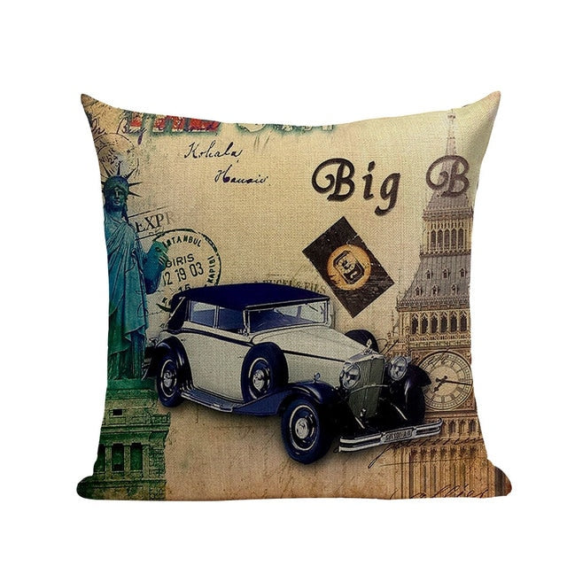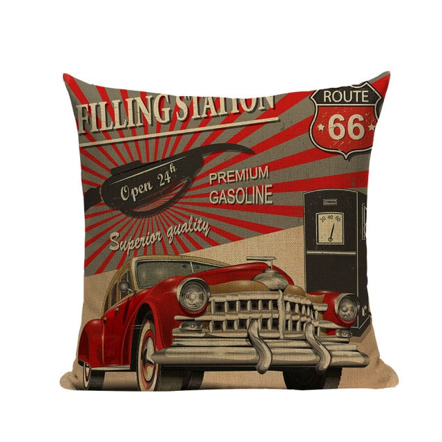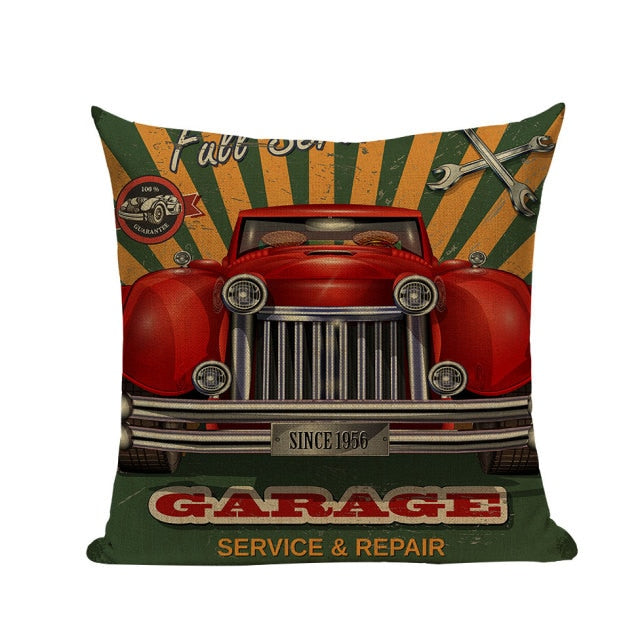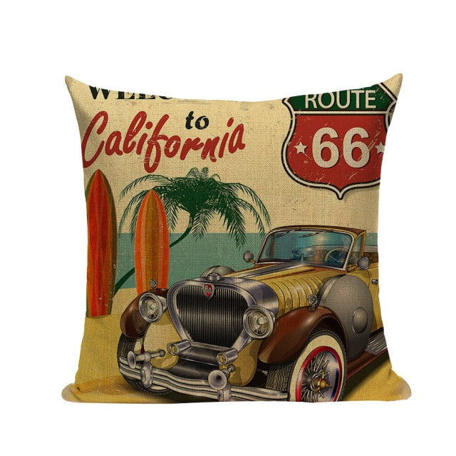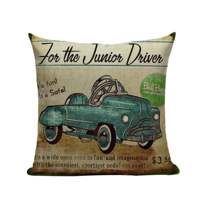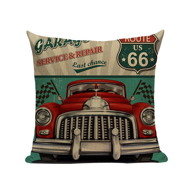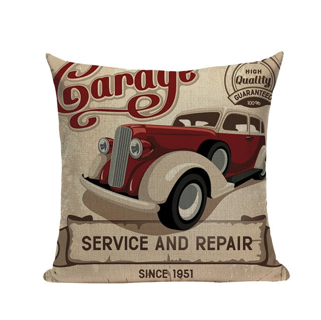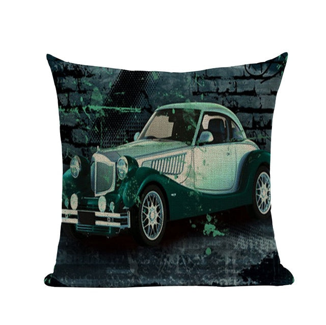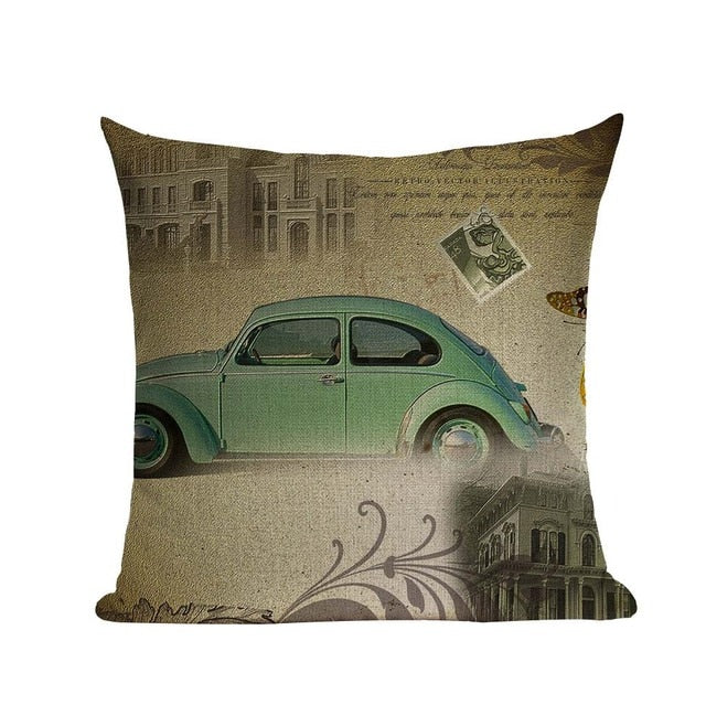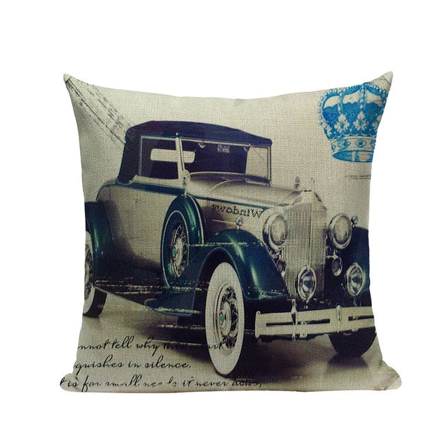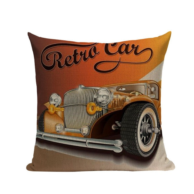 18″ Vintage Retro Automobile Car Print Throw Pillow Cover
