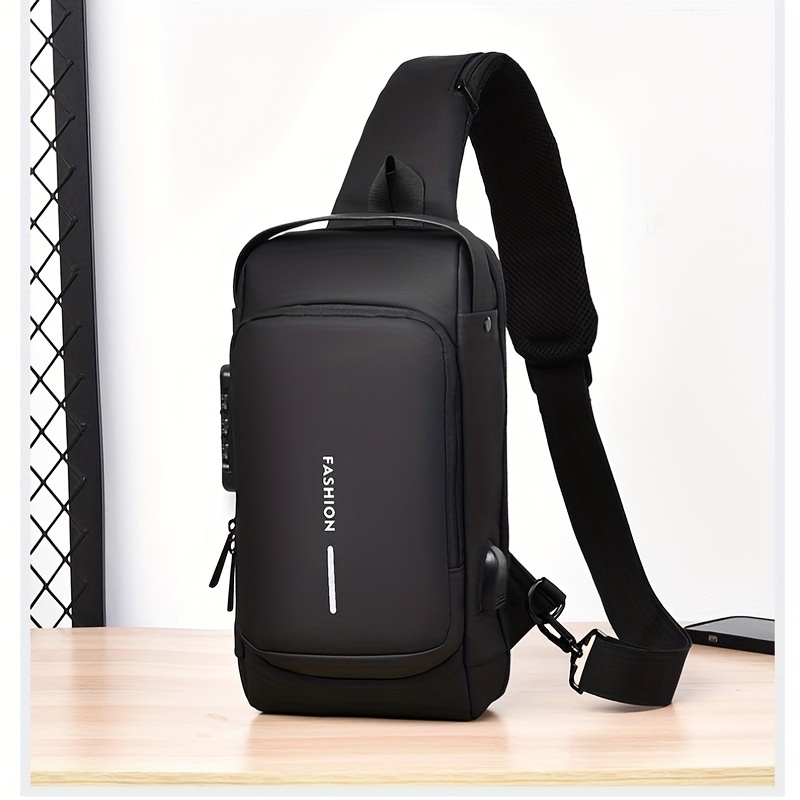 1pc Anti-theft Sling Chest Bag For Men, Password Lock Crossbody Bag For Hanging Out & Daily Commute, Cool Motorcycle Sport Bag