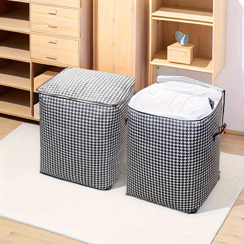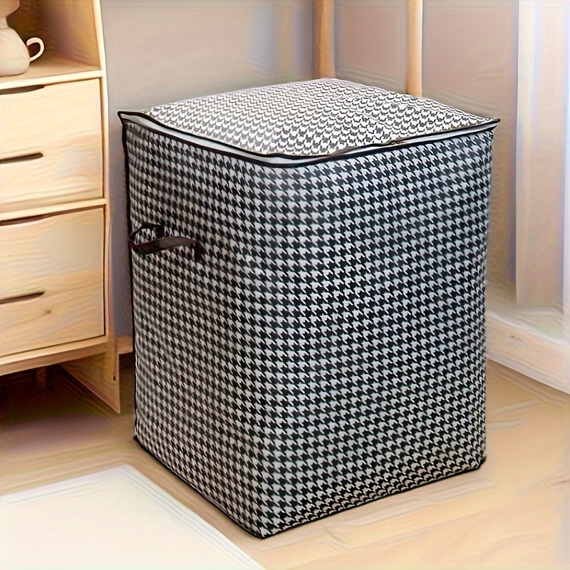 1pc Clothes Storage Bag, Houndstooth Pattern Folding Fabric Storage Bag, Large Capacity Waterproof Moisture-proof Cotton Quilt Storage Bag, Home Organization And Storage
