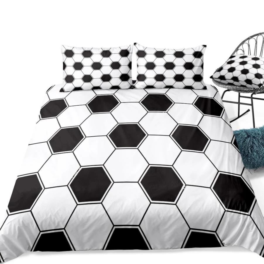 2/3-Piece Black & White Soccer Ball Pattern Duvet Cover Set