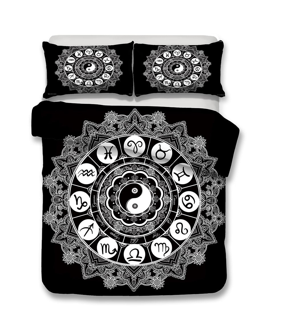 2/3-Piece Black & White Yin-Yang Zodiac Chart Duvet Set