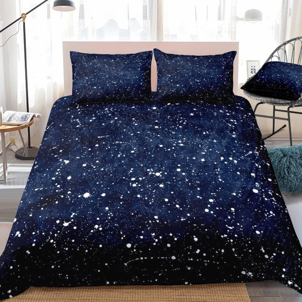 2/3-Piece Blue Space Star Constellation Print Duvet Cover Set
