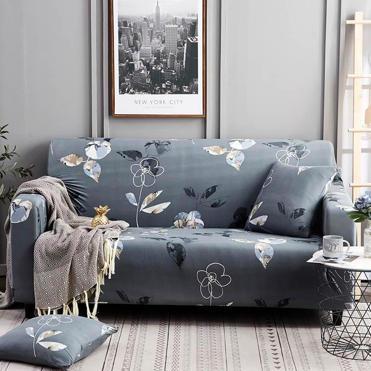 Blue Gray Abstract Floral Pattern Sofa Couch Cover