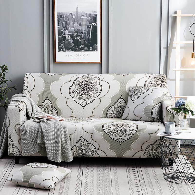 Beige Floral Medallion Pattern Sofa Couch Cover