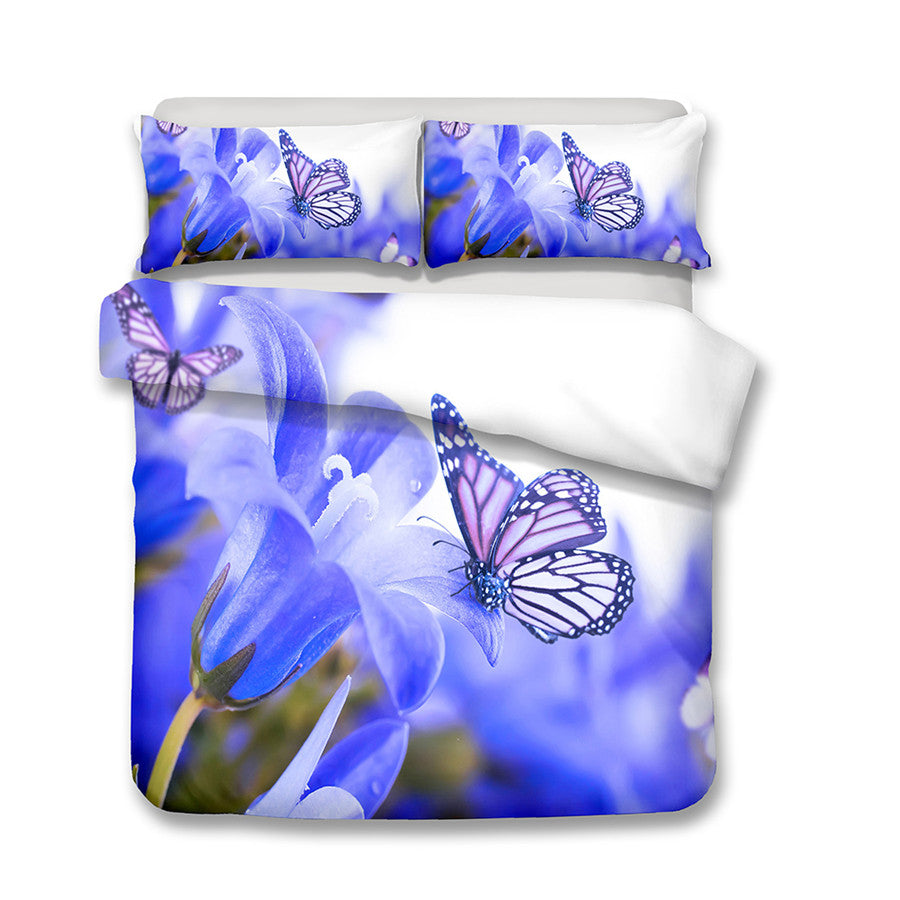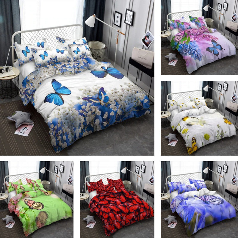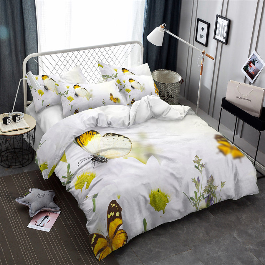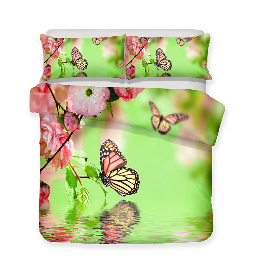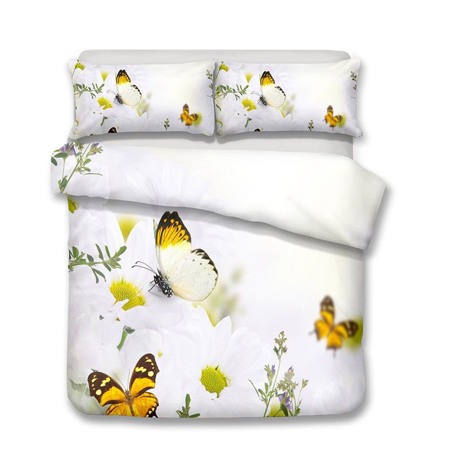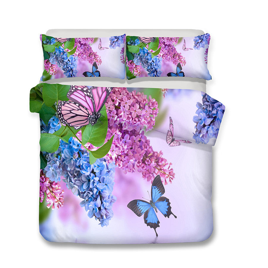 2/3-Piece Colorful Flower Butterfly Print Duvet Cover Set