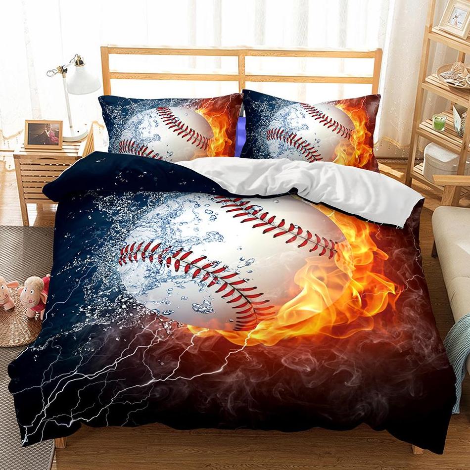 2/3-Piece Flaming Baseball Duvet Cover Bedding Set