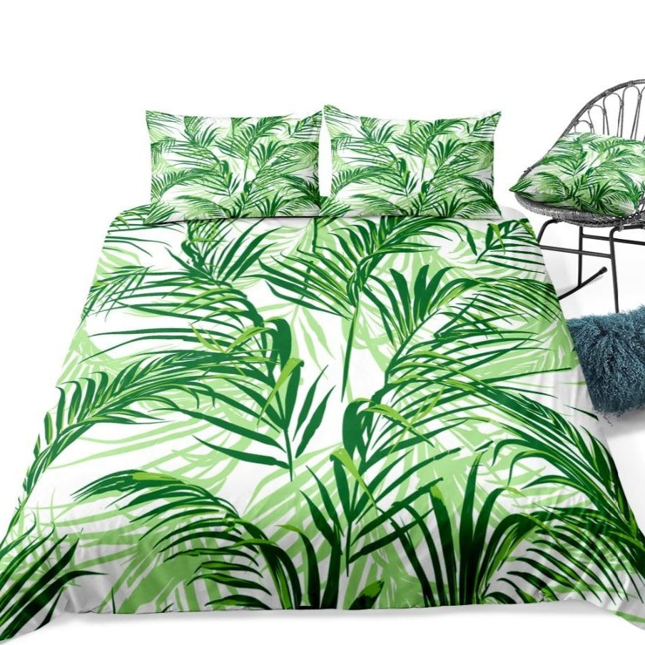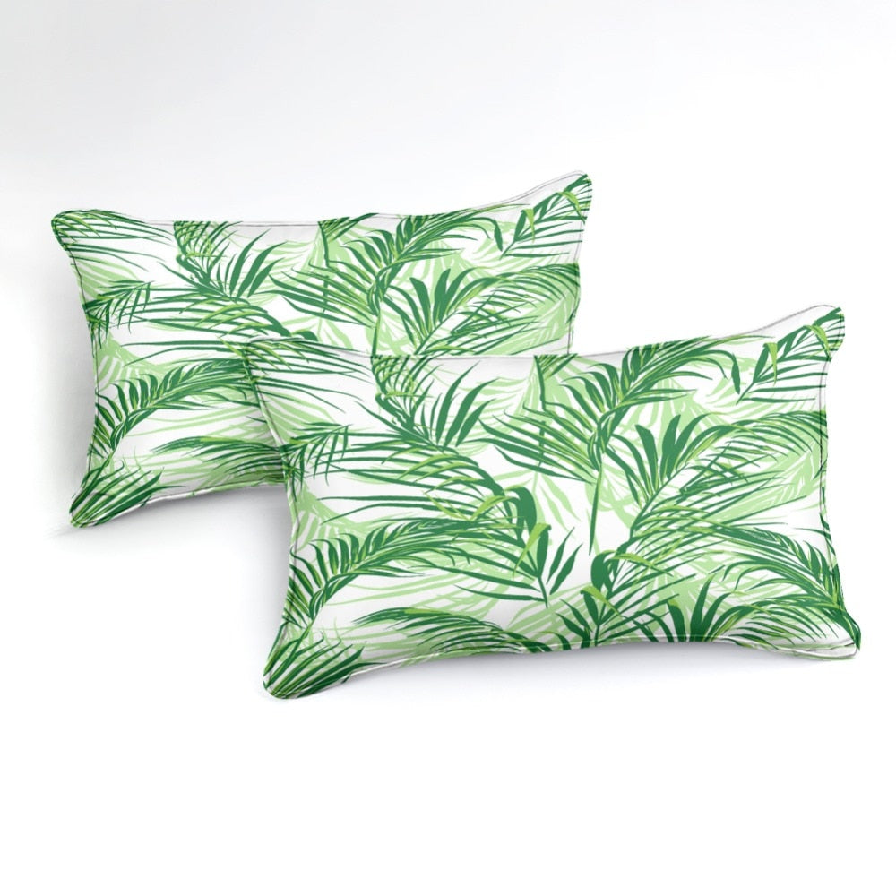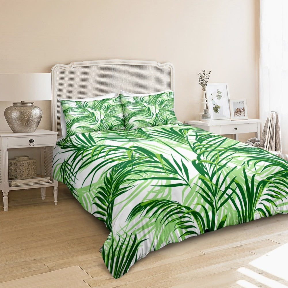 2/3-Piece Green Tropical Palm Fronds Duvet Cover Set