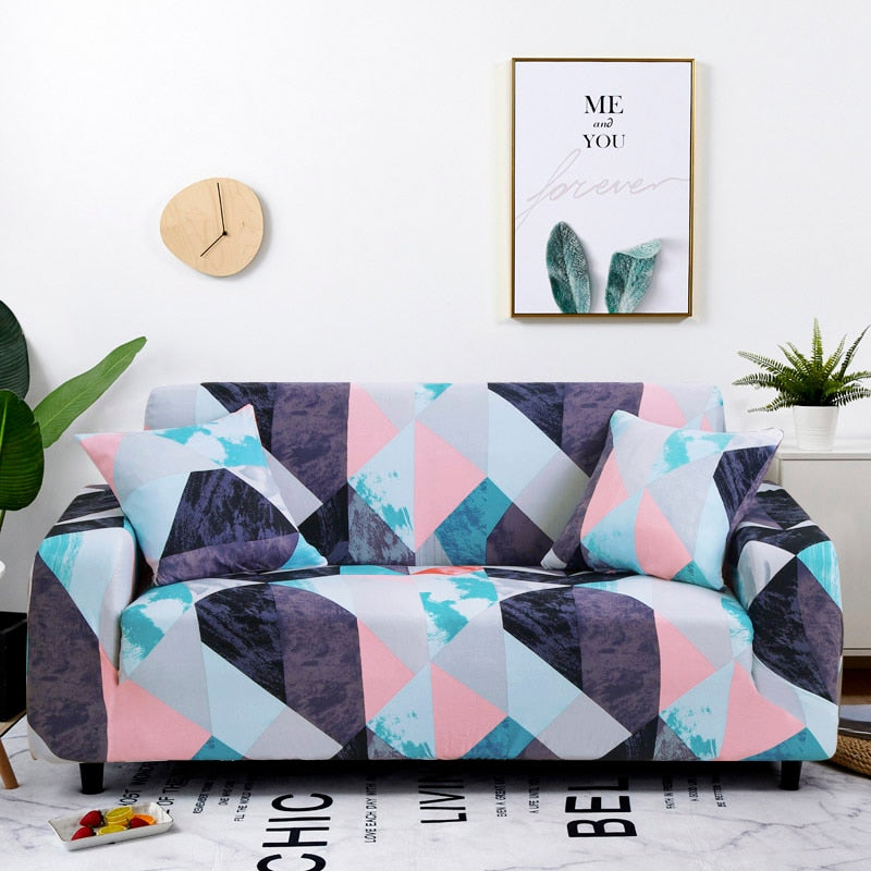 Pink / Blue Geometric Triangle Pattern Sofa Couch Cover