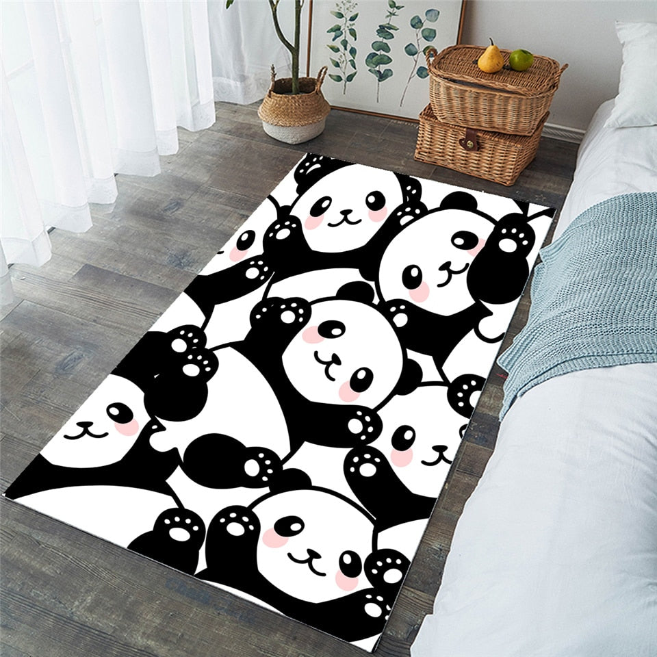Black & White Cartoon Panda Area Rug Floor Mat