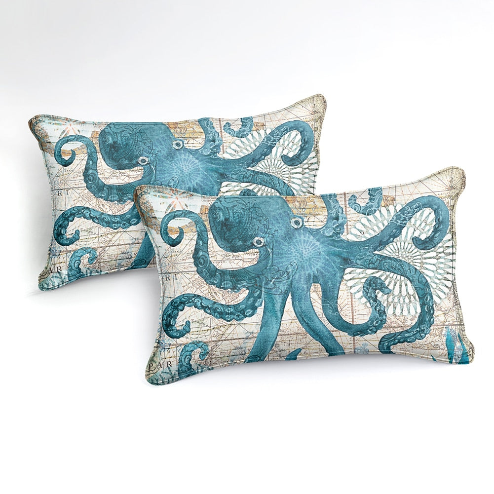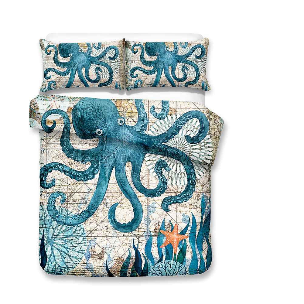 2/3-Piece Mediterranean Octopus Print Duvet Cover Set