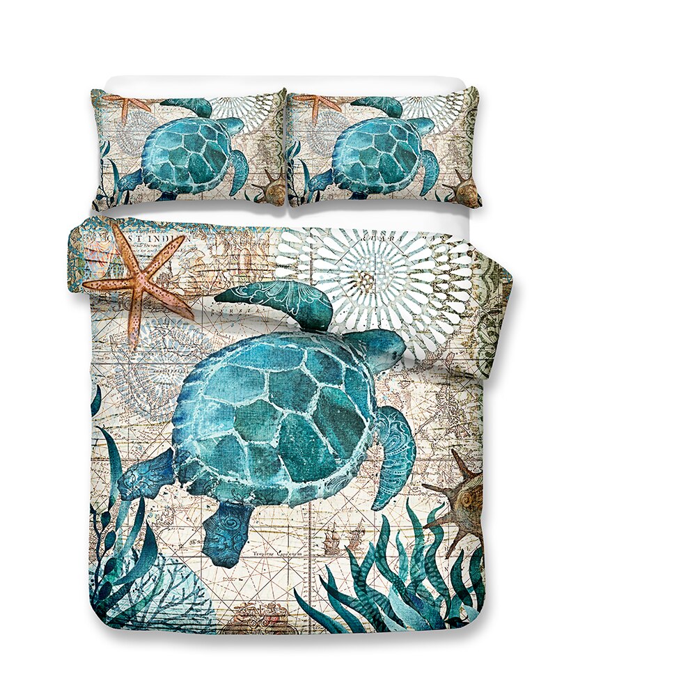 2/3-Piece Mediterranean Sea Turtle Print Duvet Cover Set