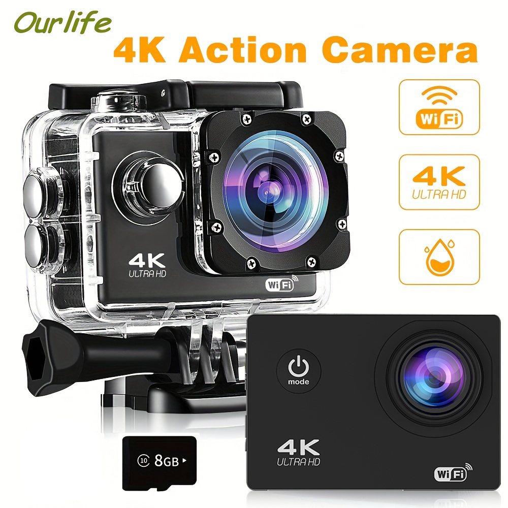 Action Camera 4K Ultra HD – Waterproof, WiFi, Remote Control, 8GB Card, 170° Wide-Angle Lens – Capture Your Adventures Like Never Before