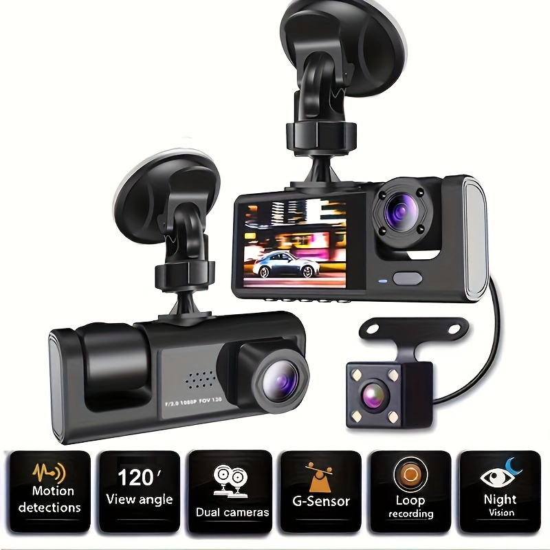 Be the first to review “3 Channel Dash Cam Front And Rear Inside, 1080P Dash Cam IR Night Vision, Loop Recording Car DVR Camera 3 Lens With 5.08 Cm IPS Screen 3 Cameras Car Dashcam, car Black Box Recording At Same Time, Wide Angle Dashboard Camera Recorder” Cancel reply