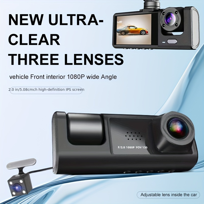 3 Channel Dash Cam Front And Rear Inside, 1080P Dash Cam IR Night Vision, Loop Recording Car DVR Camera 3 Lens With 5.08 Cm IPS Screen 3 Cameras Car Dashcam, car Black Box Recording At Same Time, Wide Angle Dashboard Camera Recorder