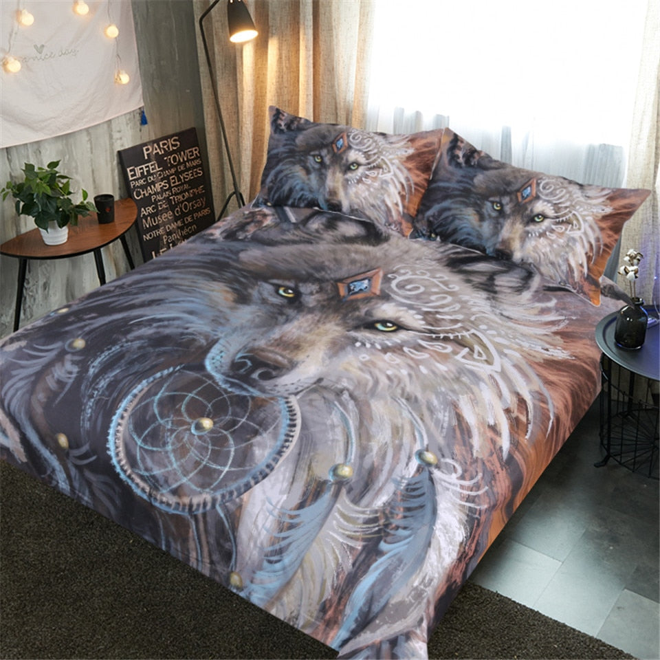 3-Piece Wolf Warrior by SunimaArt Tribal Duvet Set