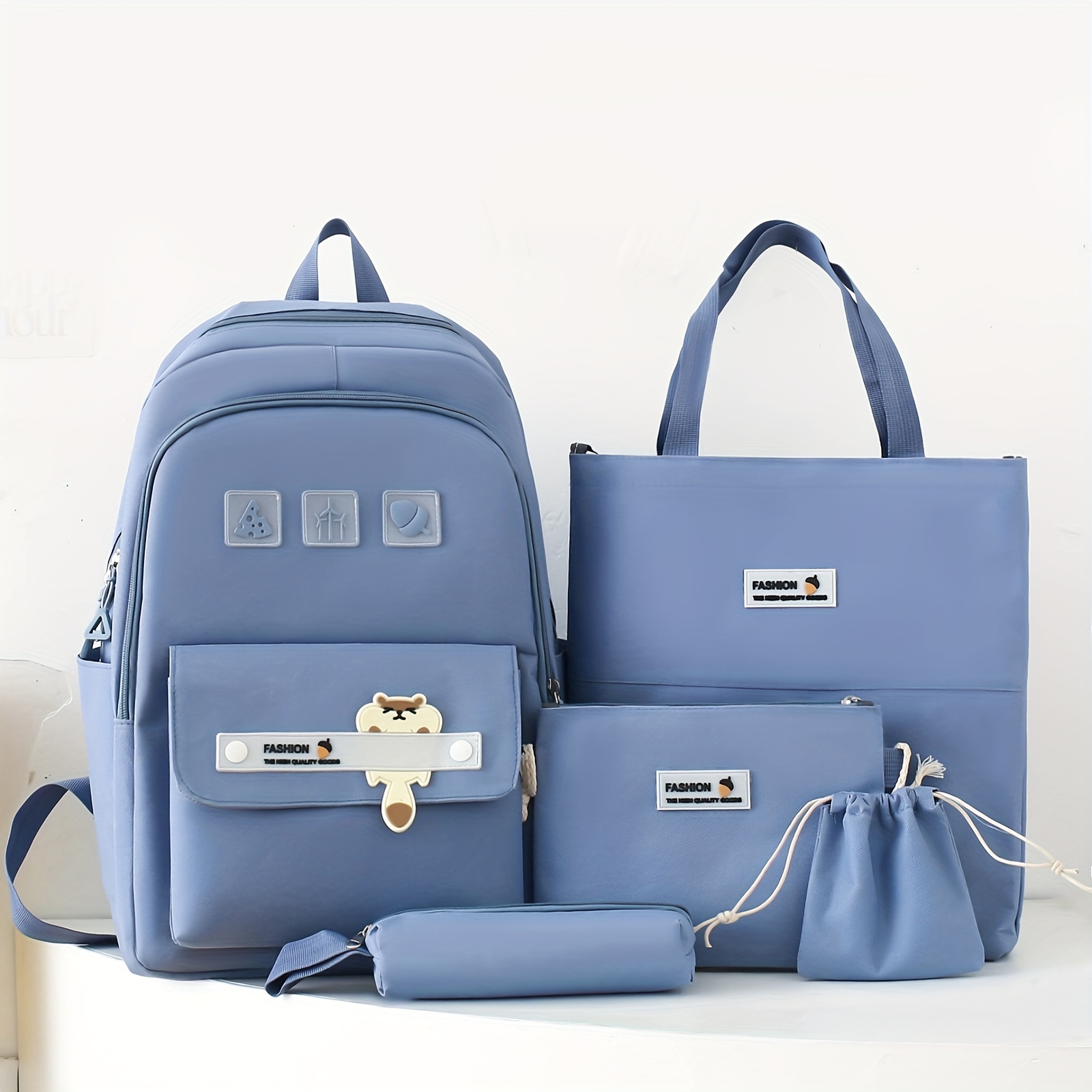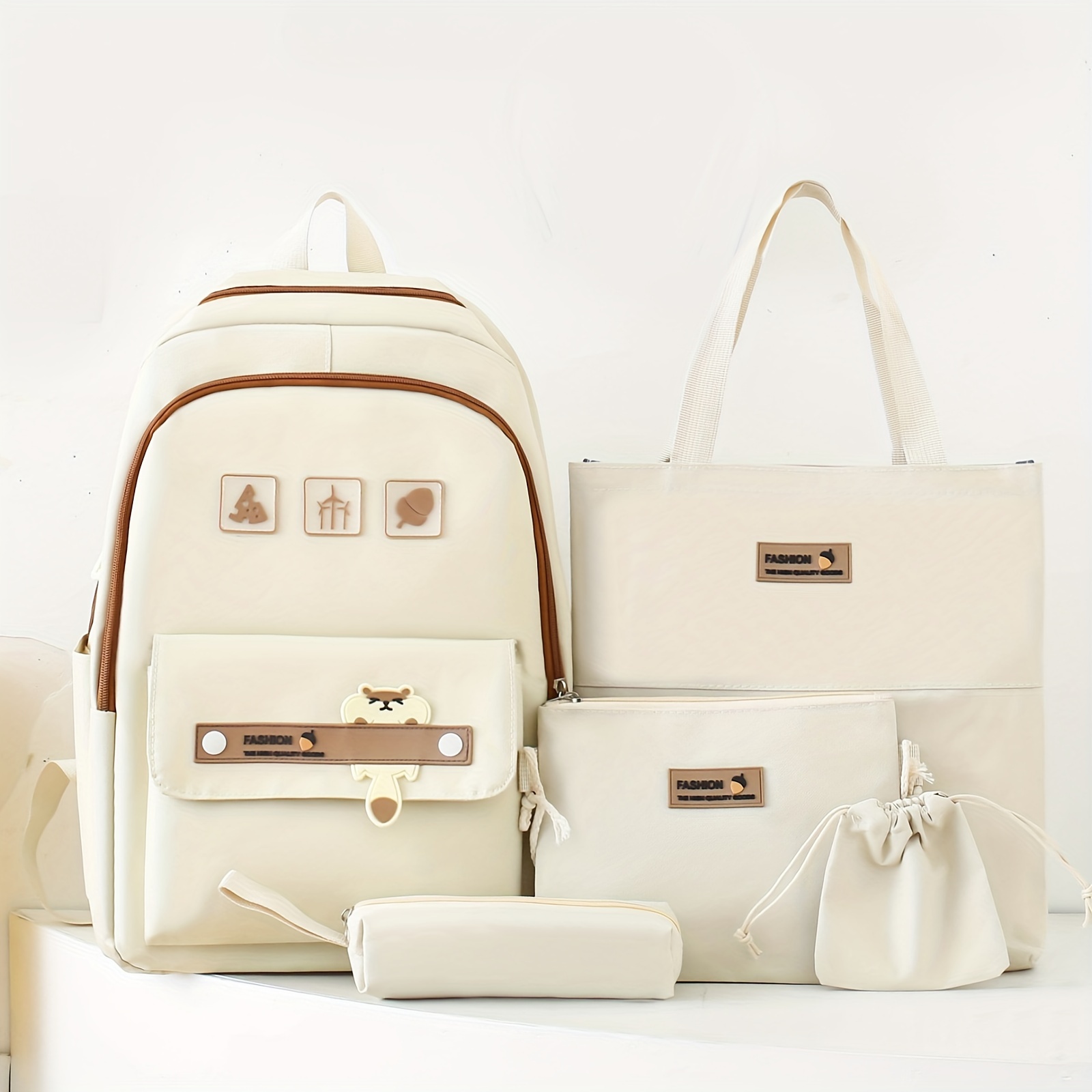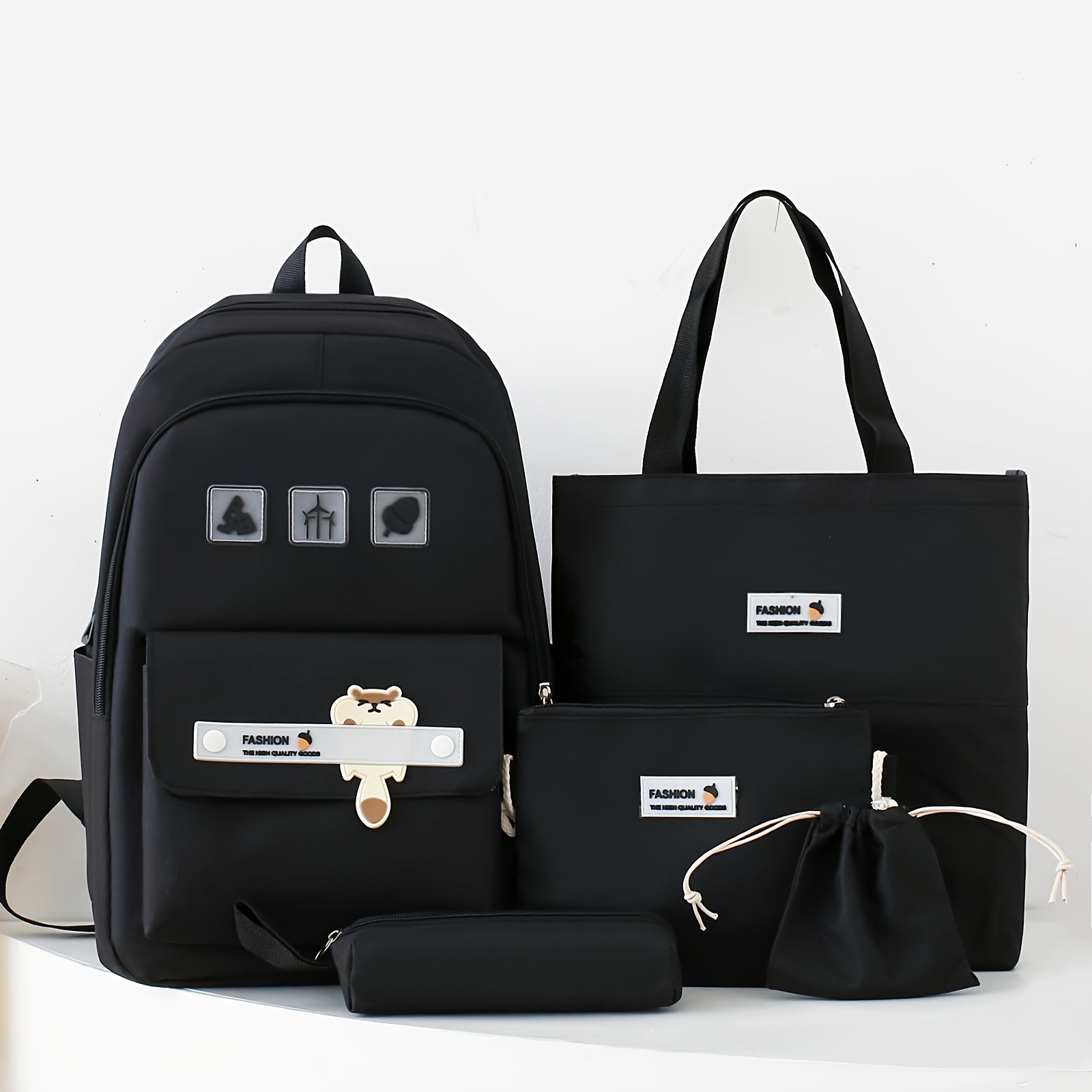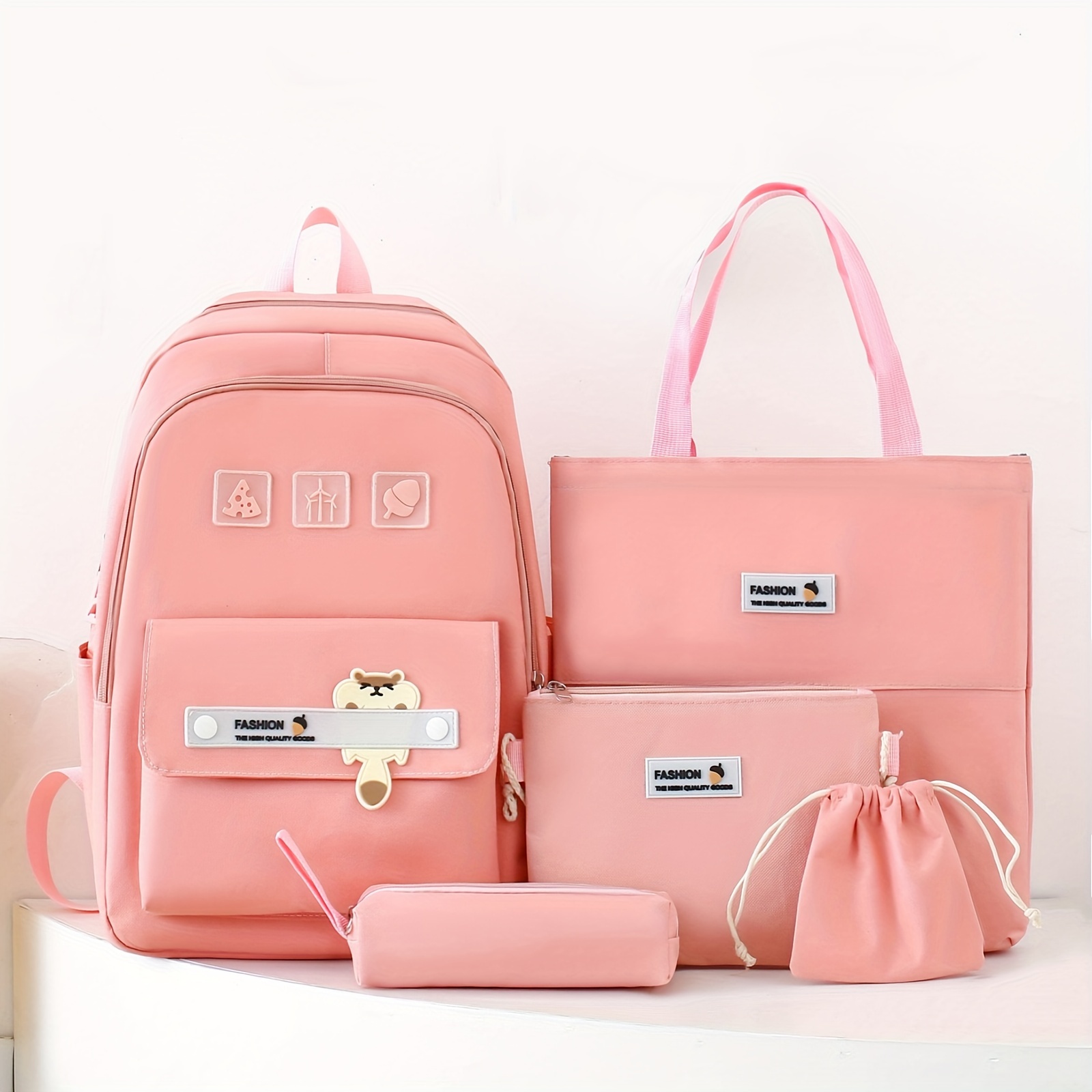 5pcs Cute Cartoon School Backpack, 1set Preppy Style Travel Bookbag Daypack With Tote Bag Crossbody Bag Pencil Case And Drawstring Storage Bag