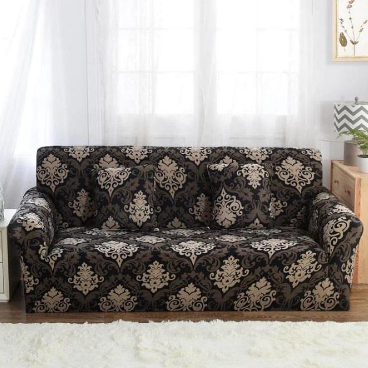 Black / Gold Floral Damask Pattern Sofa Couch Cover