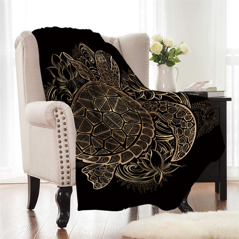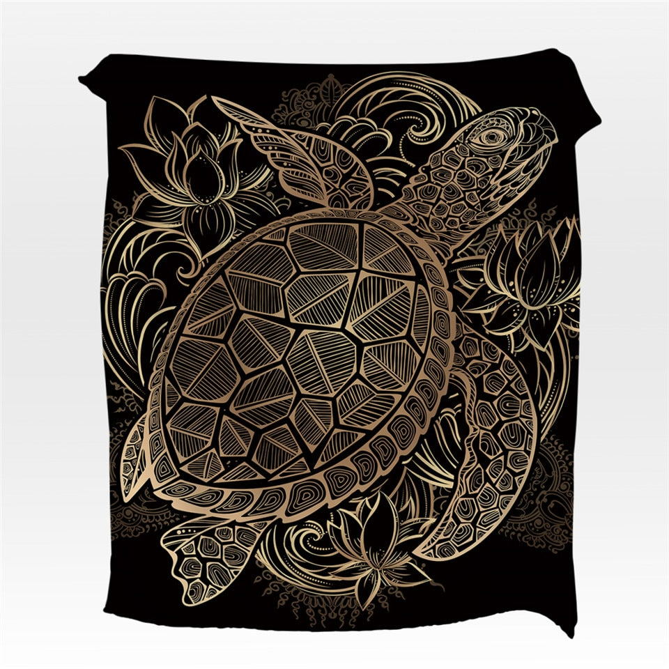 Gold Patterned Sea Turtle Fleece Throw Blanket