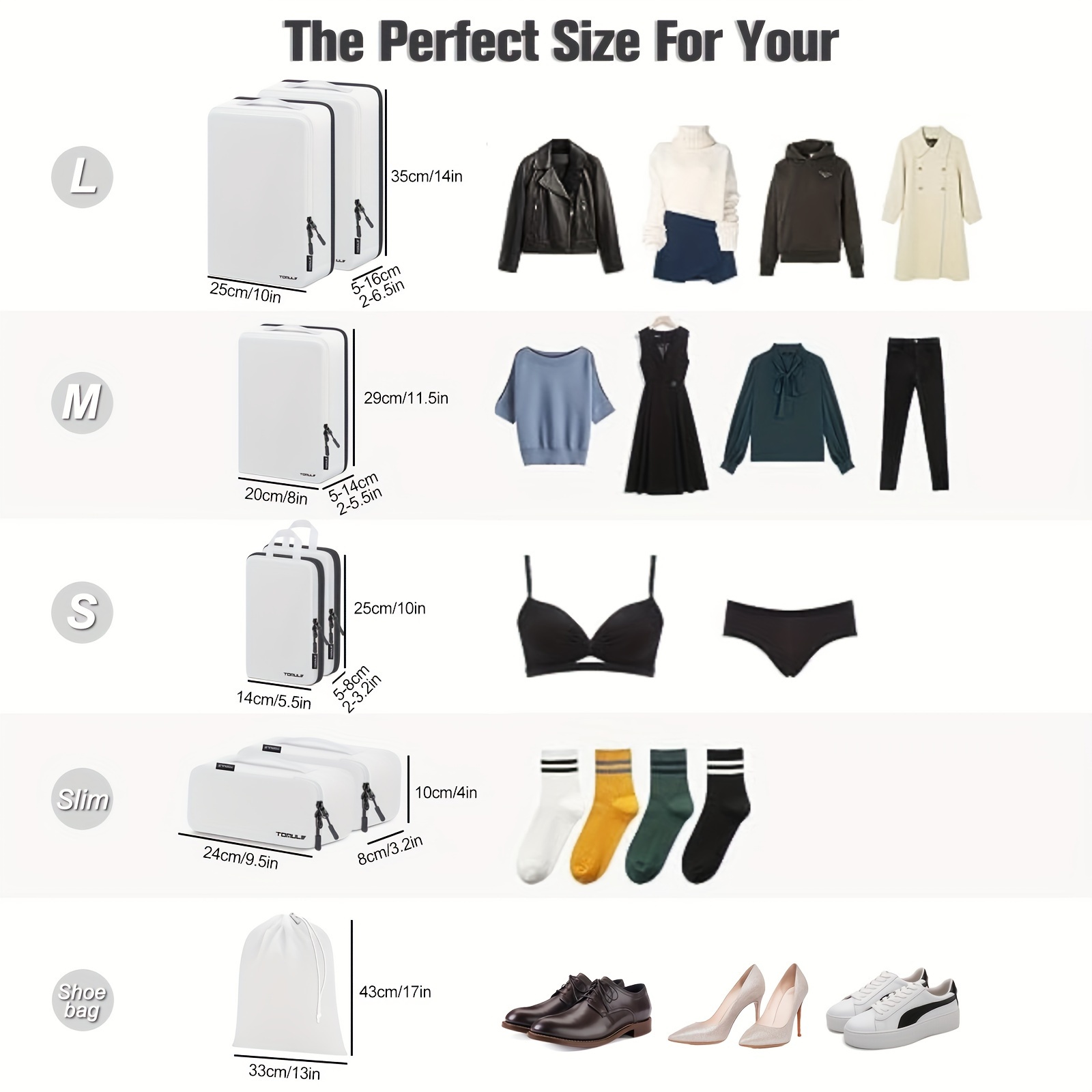 8 Pcs Travel Compression Packing Cubes, Solid Color Versatile Luggage Bags, Lightweight Clothes Bags