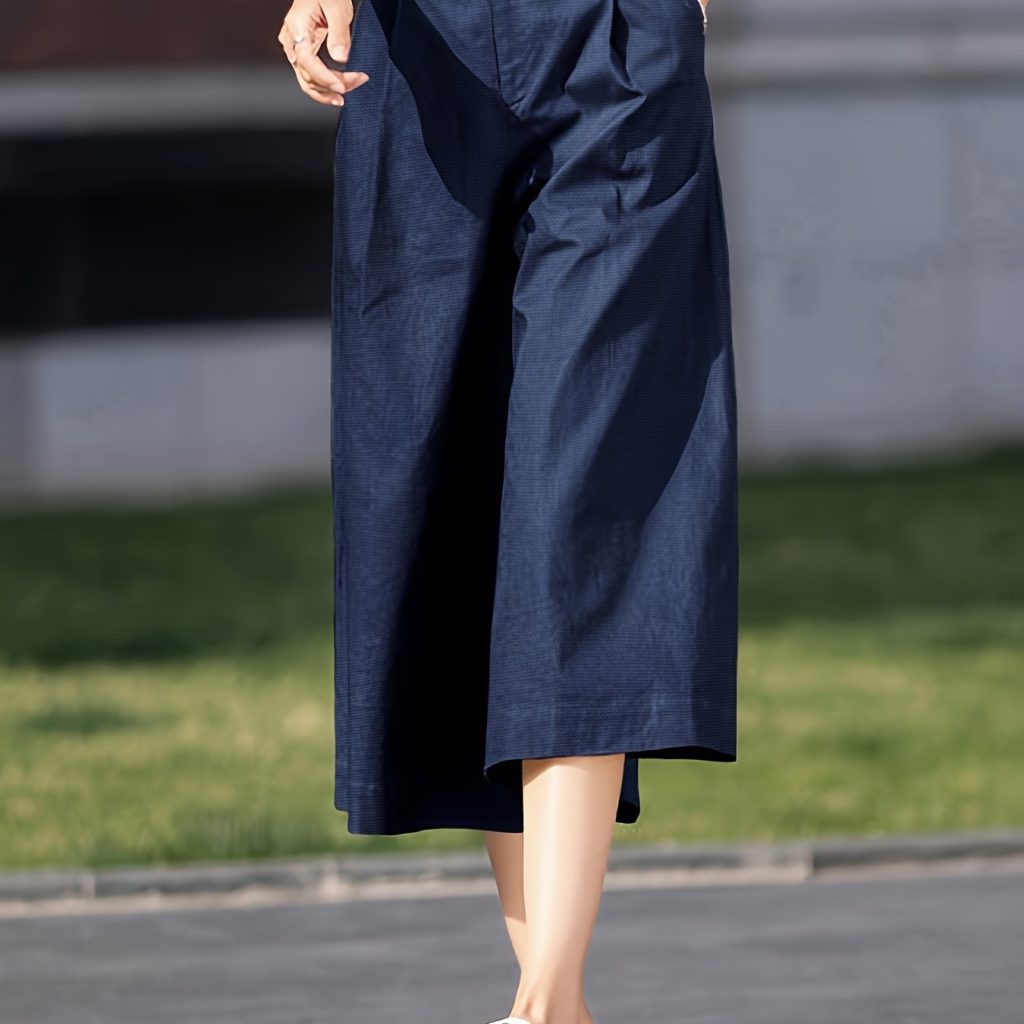 Solid Color Wide Leg Capris Pants, Casual Loose Pants For Spring & Summer, Women’s Clothing