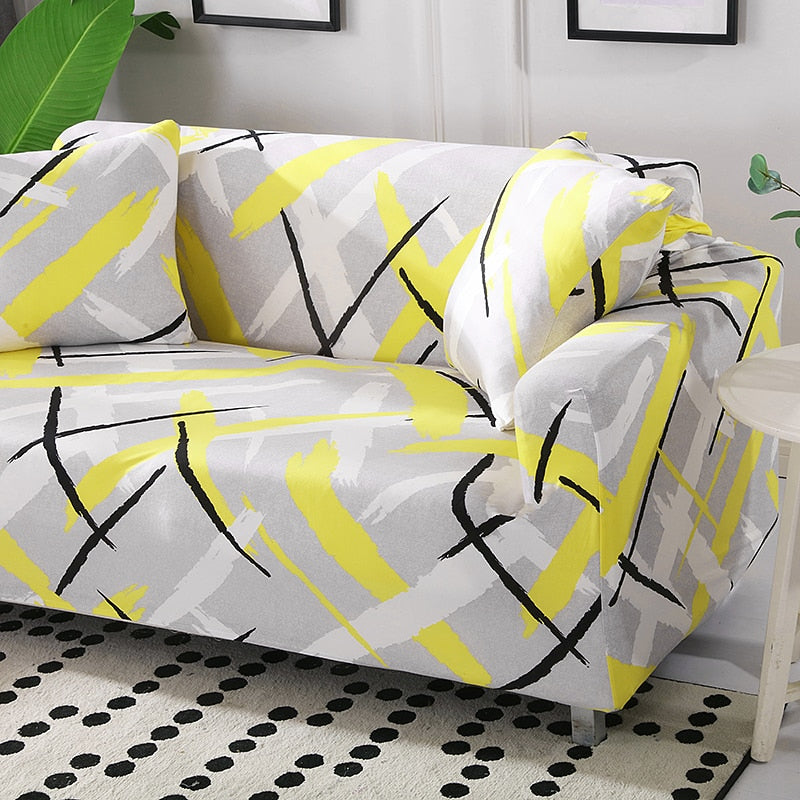 Abstract Yellow Cross Pattern Sofa Couch Cover