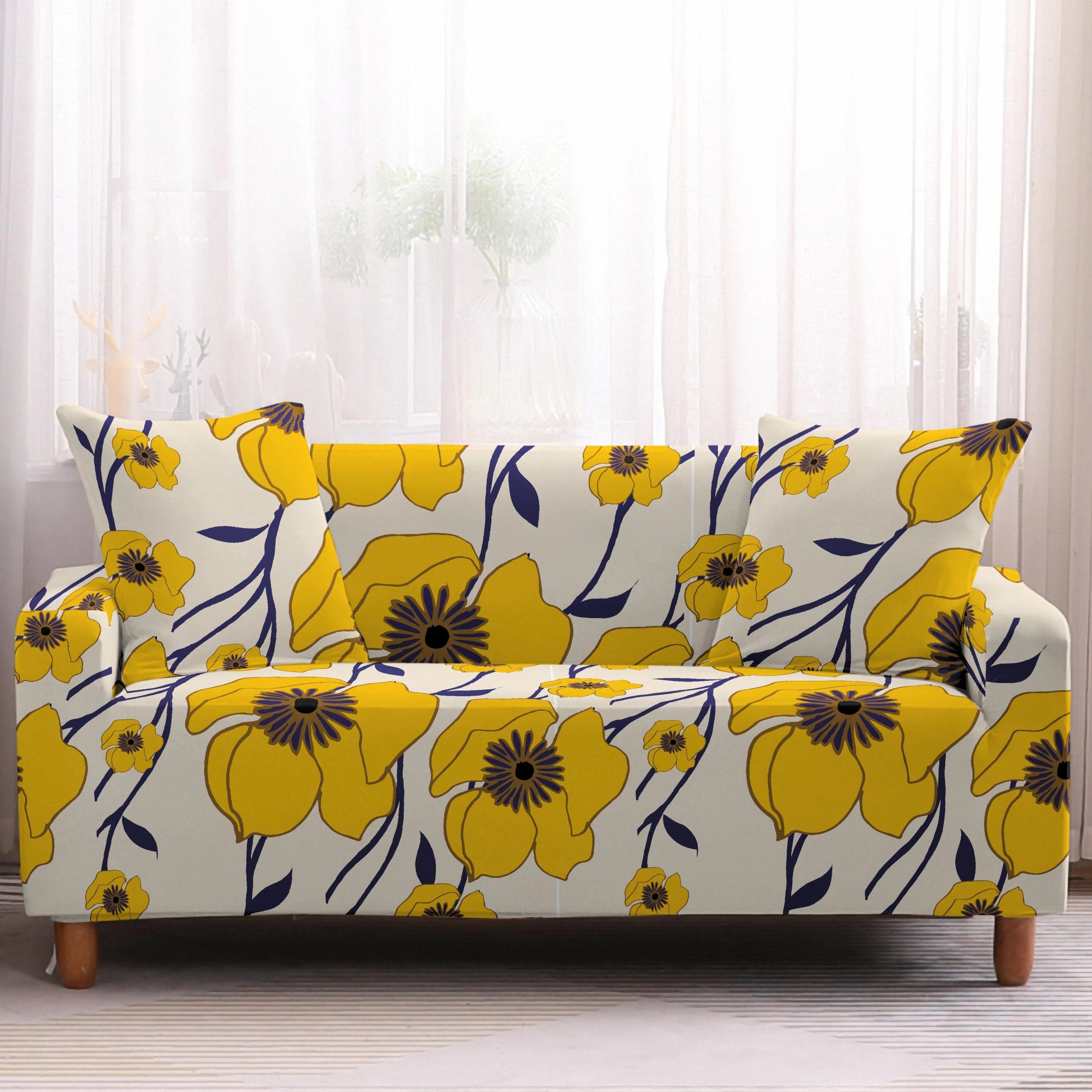 Abstract Yellow Floral Pattern Sofa Couch Cover
