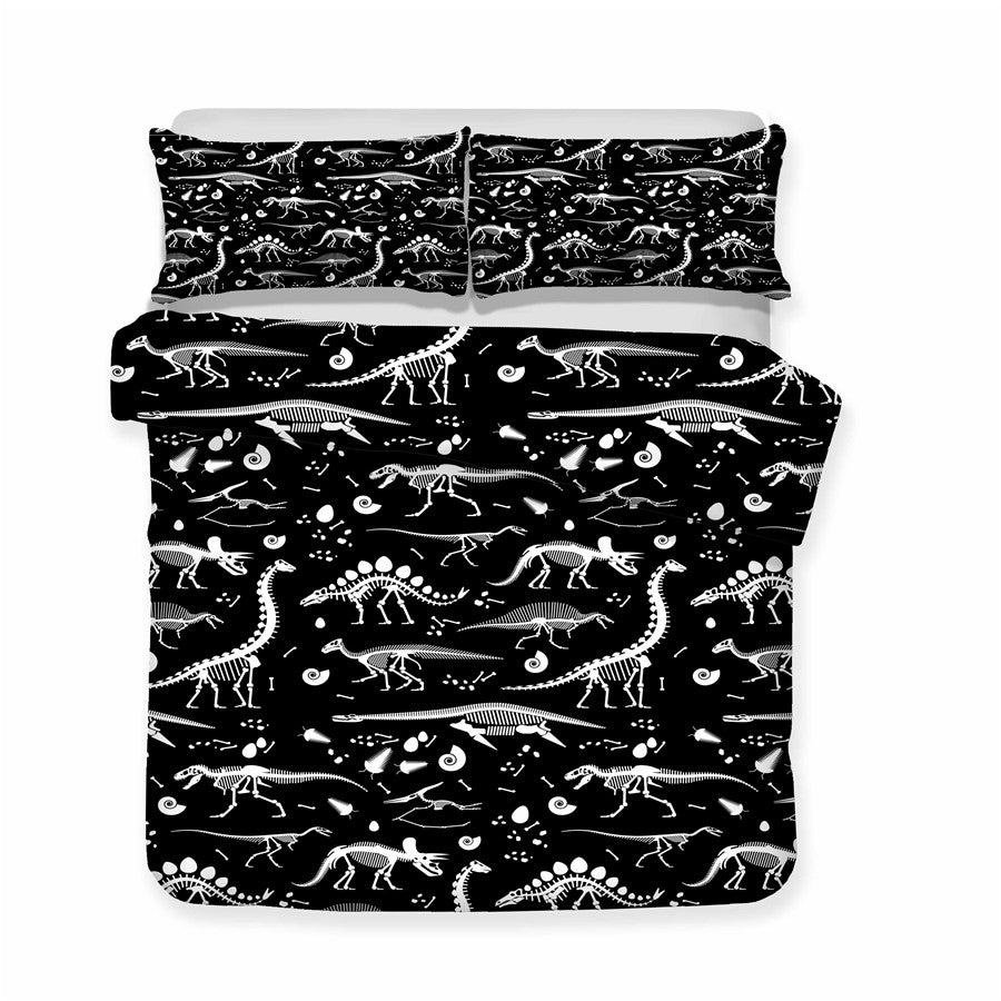 Black 2/3-Piece Kids Dinosaur Fossil Duvet Cover Set