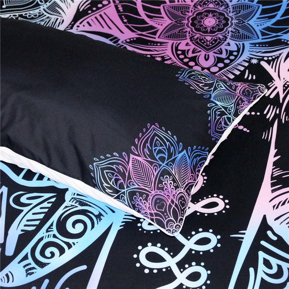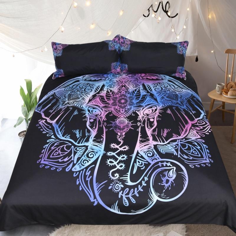 Black 3-Piece Purple Bohemian Elephant Duvet Cover Set