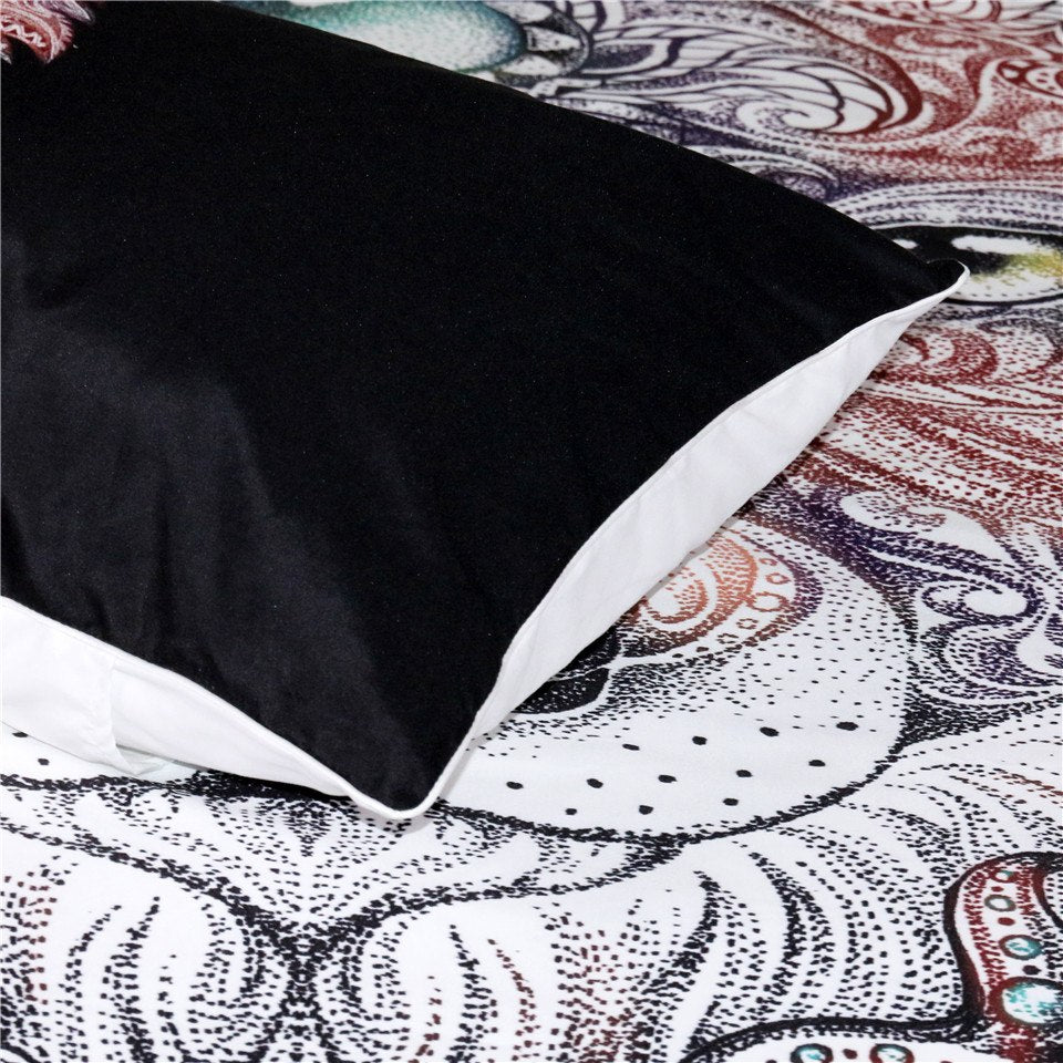 Black 3-Piece Tattoo Wolf Head Duvet Cover Bedding Set