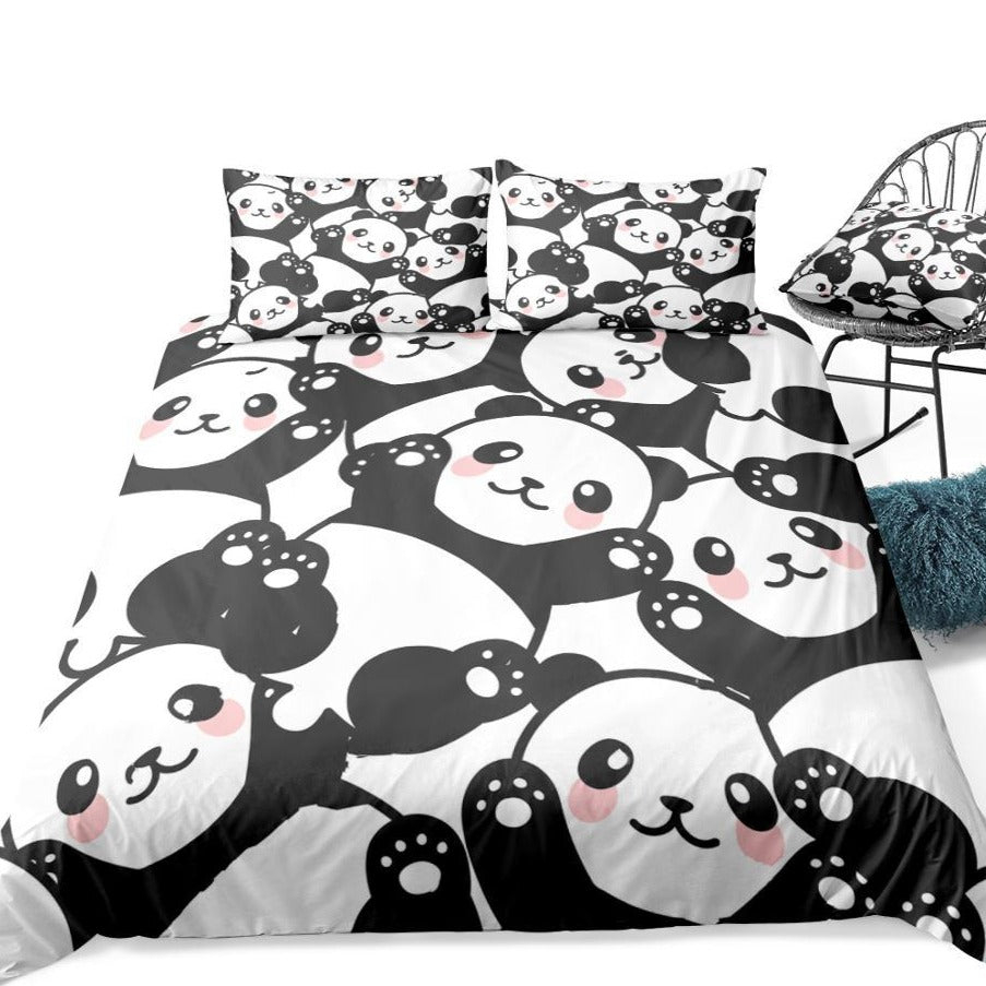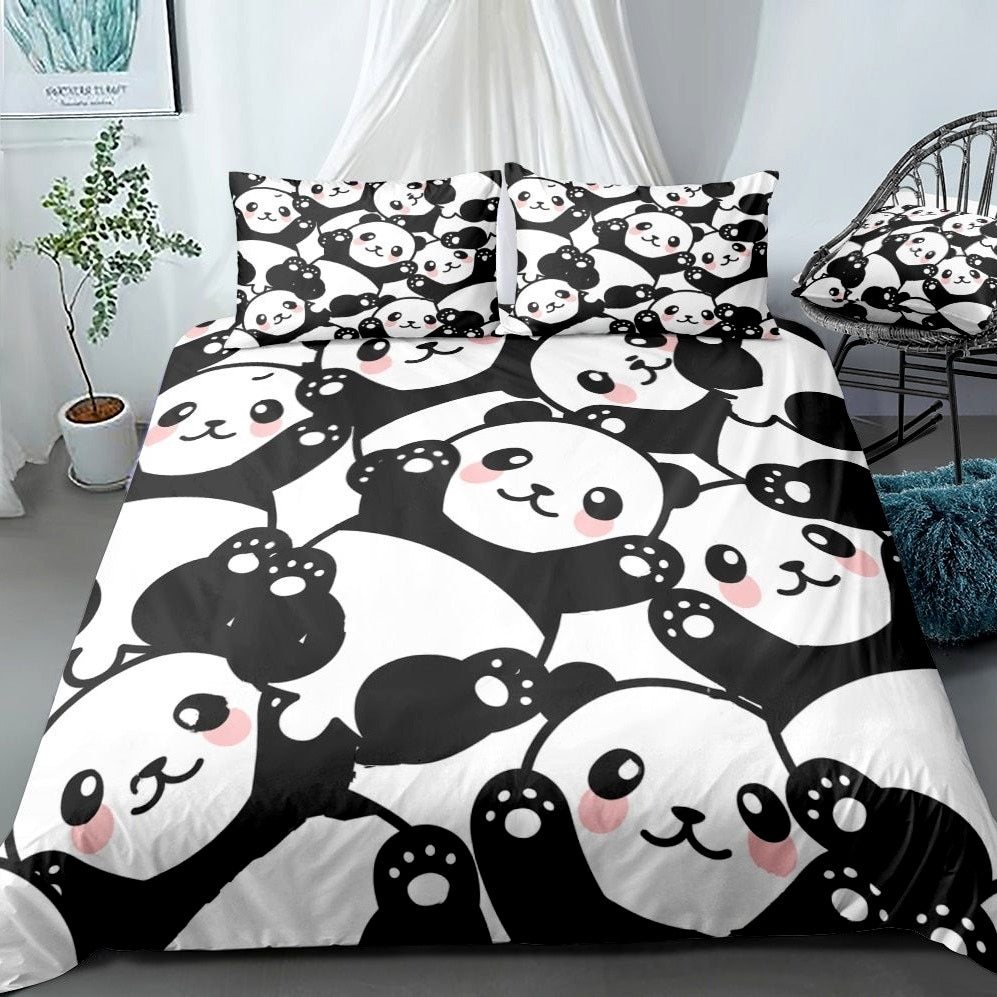Black & White 3-Piece Cartoon Panda Pattern Duvet Cover Set