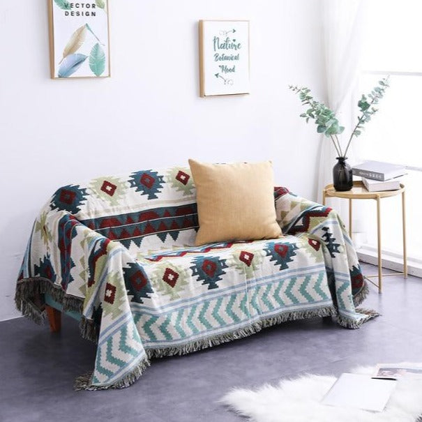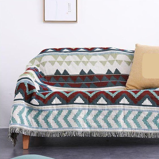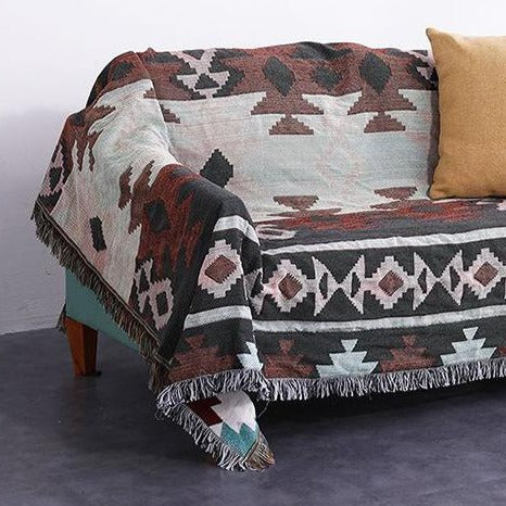 Blue / Burgundy Knitted Native Sofa Throw Cover Blanket