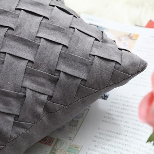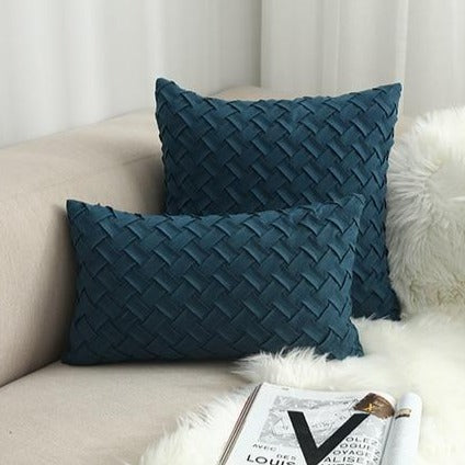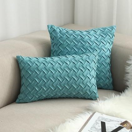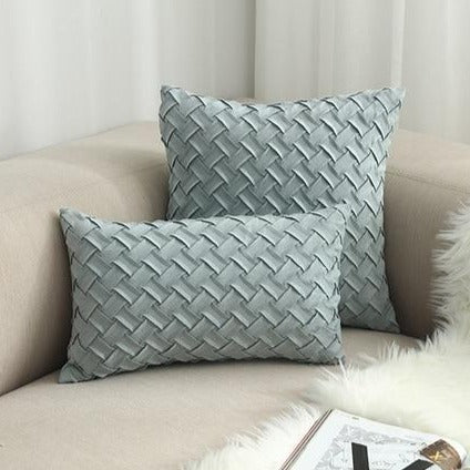 Blue / Green / Gray Weaved Faux Suede Throw Pillow Cover