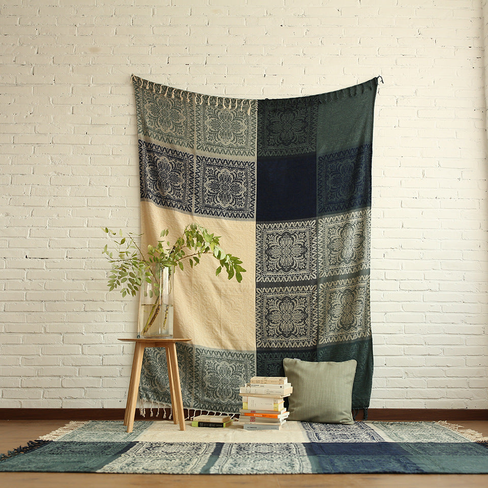 Blue / Green Knitted Bohemian Panel Tapestry Sofa Throw Cover