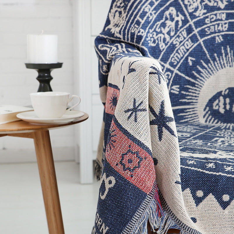 Blue Knitted Zodiac Chart Sofa Throw Cover Blanket