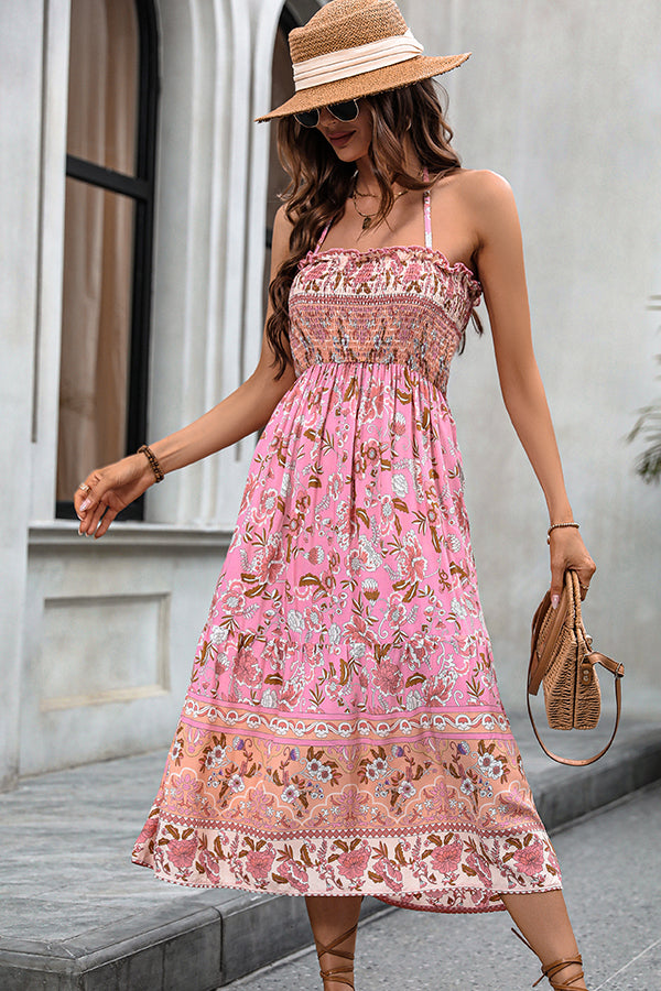 Bohemia Print Smocked Halter Neck Maxi Dress