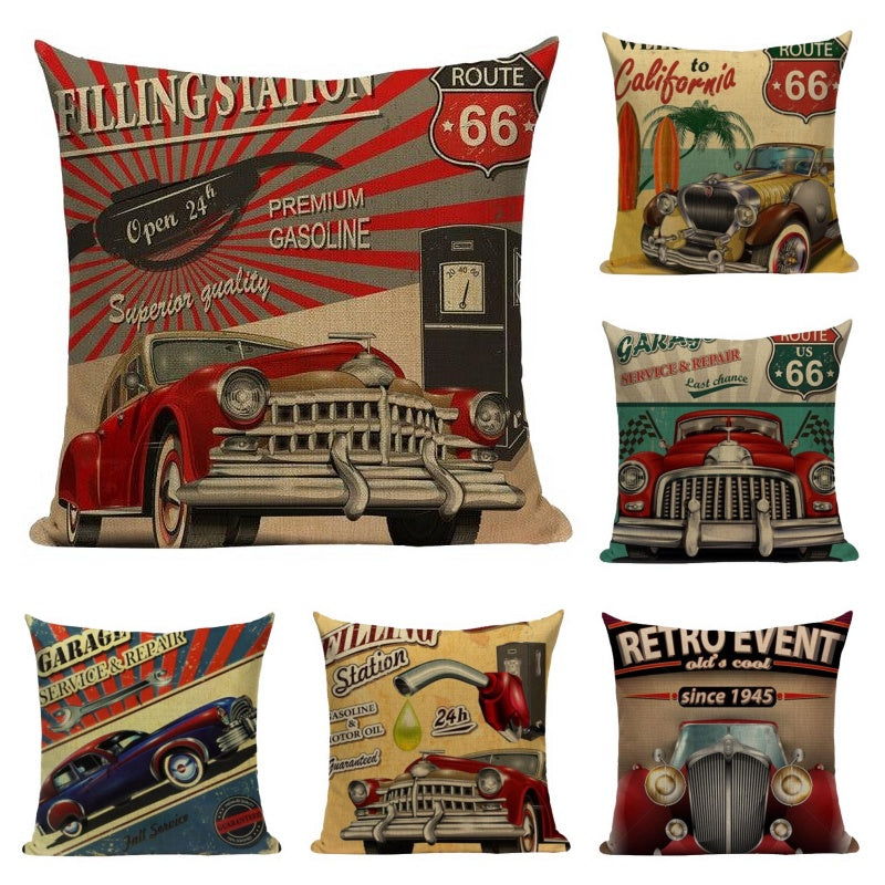 18″ Vintage Retro Automobile Car Print Throw Pillow Cover