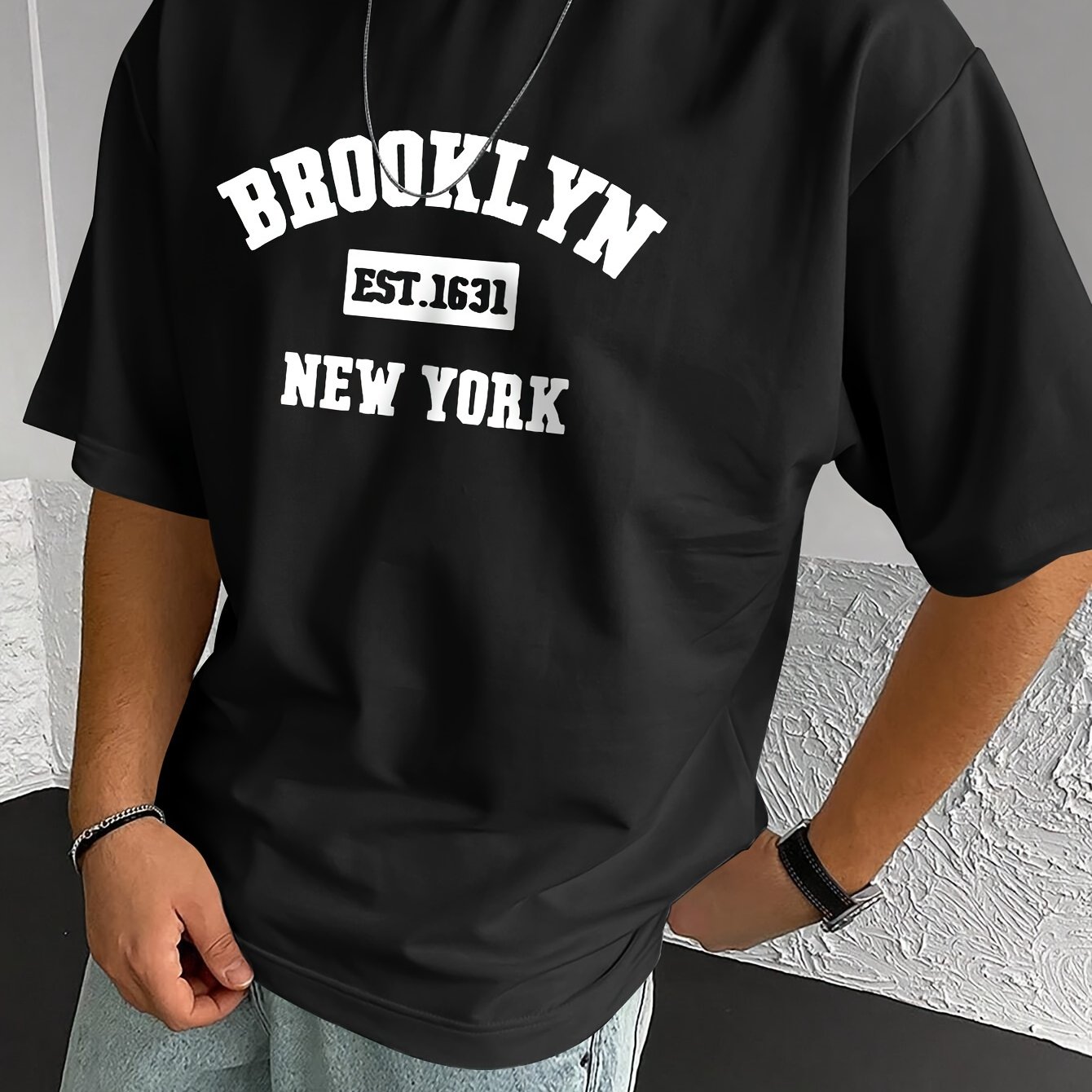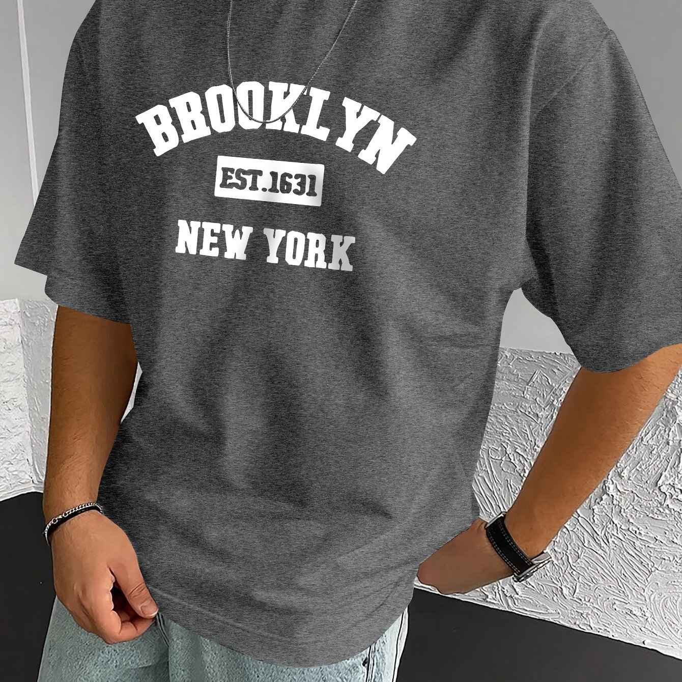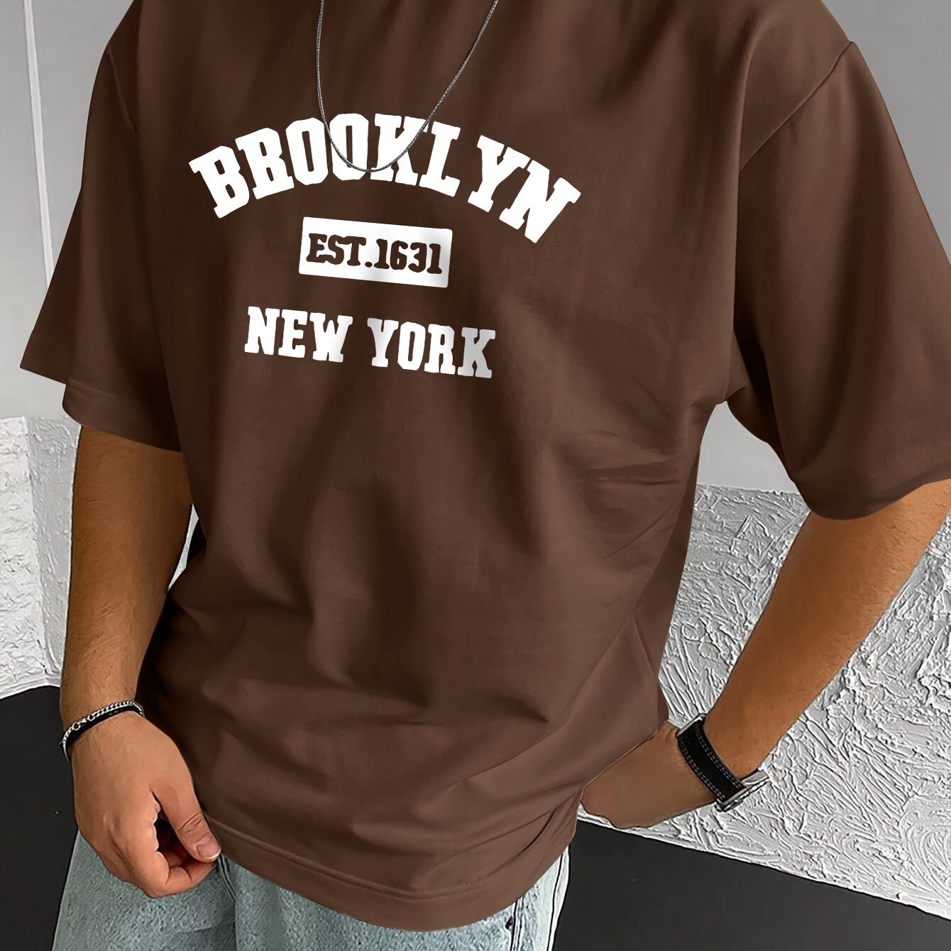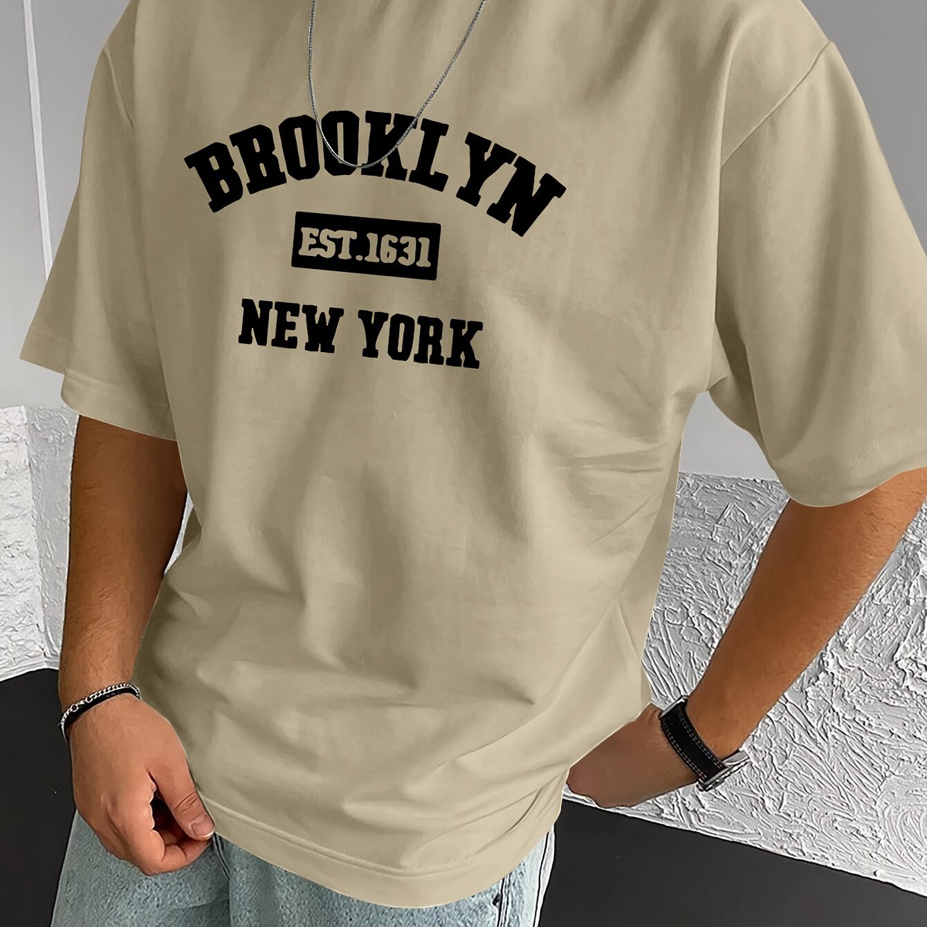 ” Brooklyn ” Stylish Print Summer & Spring Tee For Men, Casual Short Sleeve Fashion Style T-Shirt, Sporty New Arrival Novelty Top For Leisure