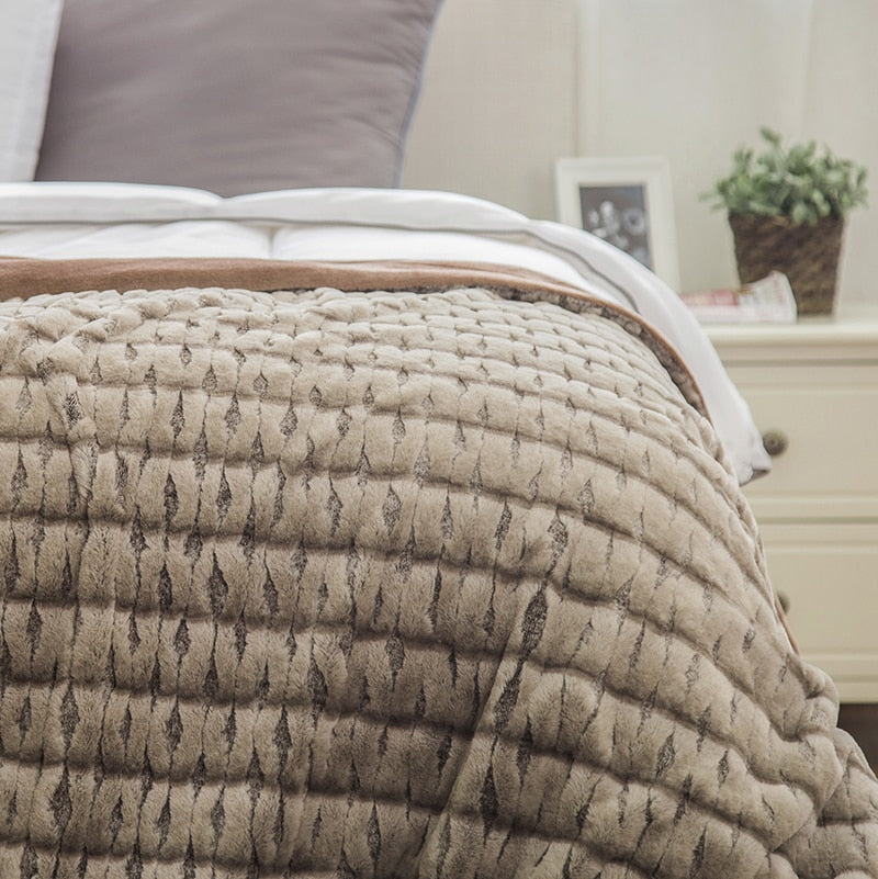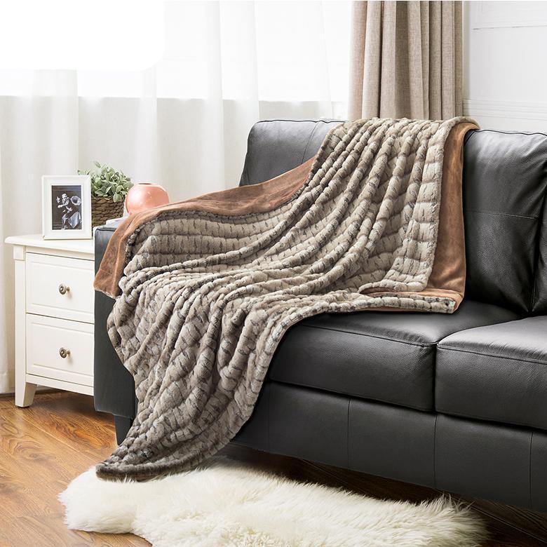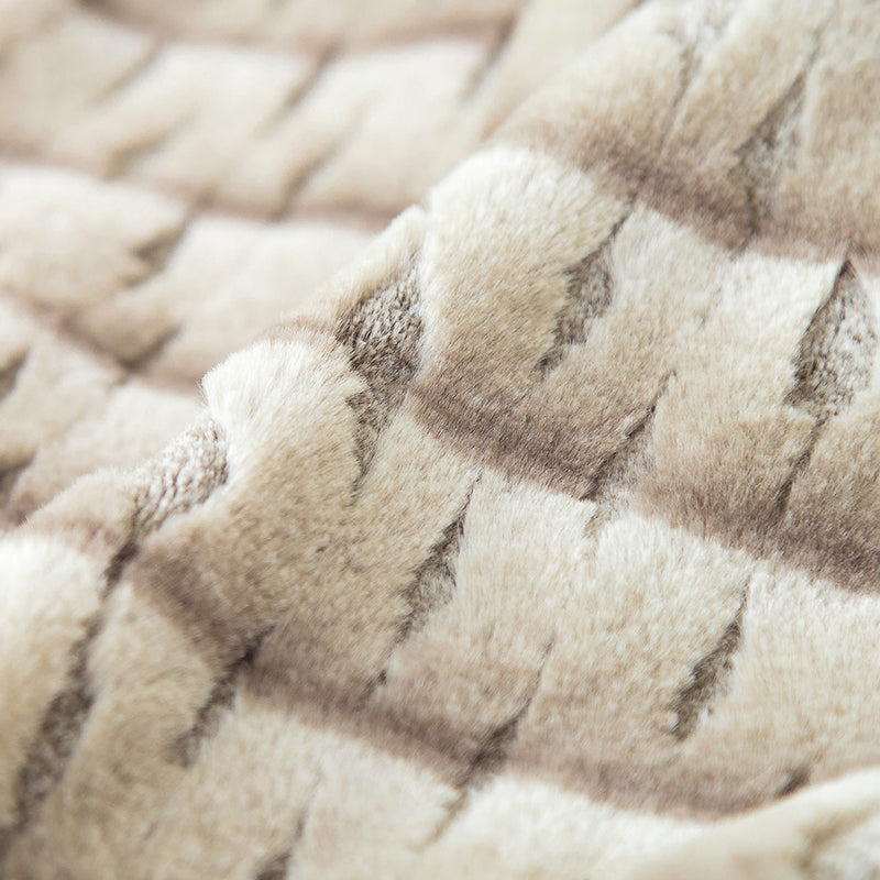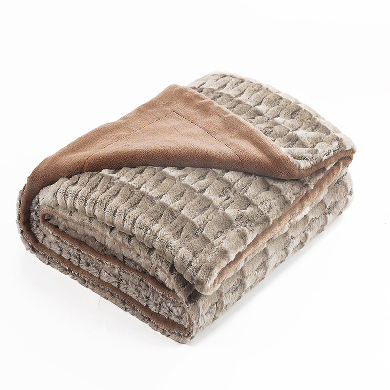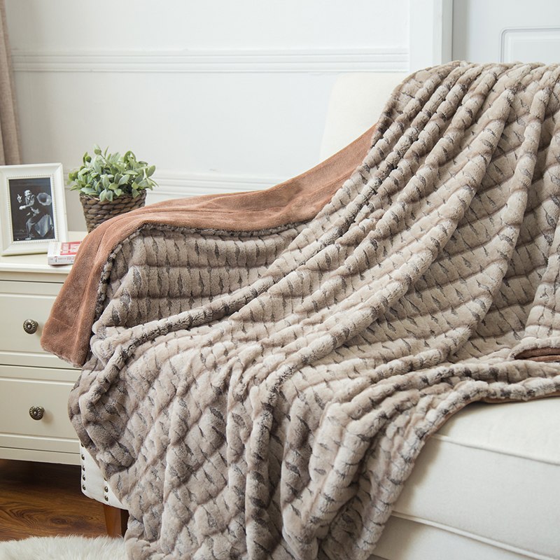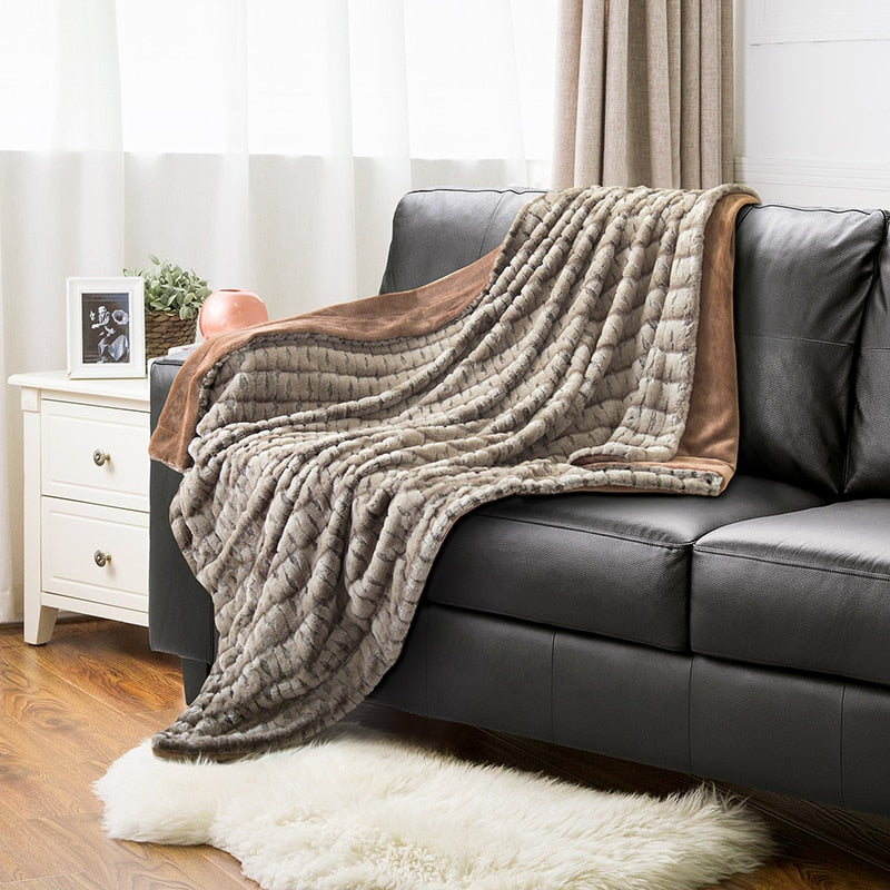 Brown Carved Fleece Faux Rabbit Fur Throw Blanket