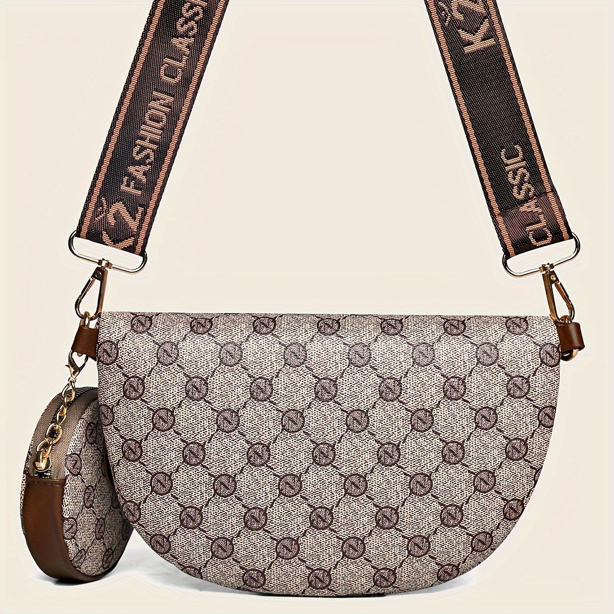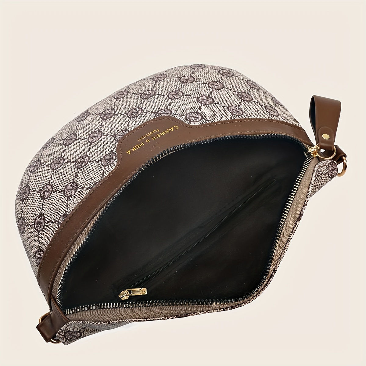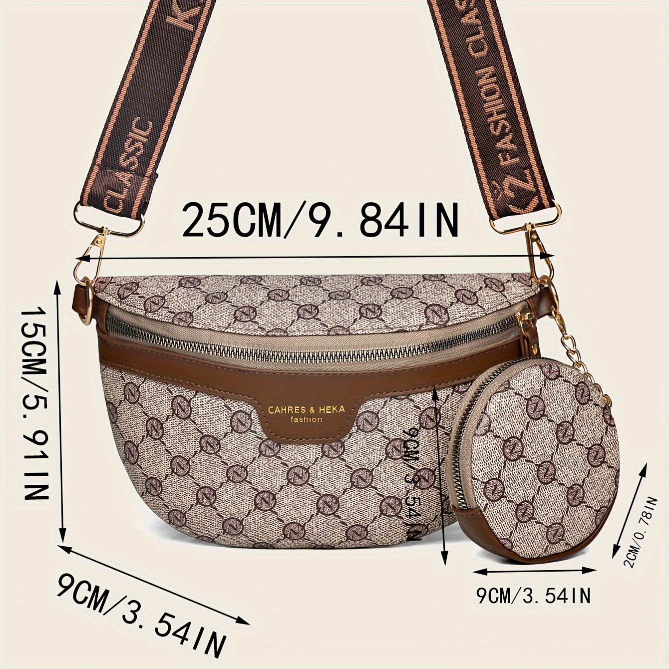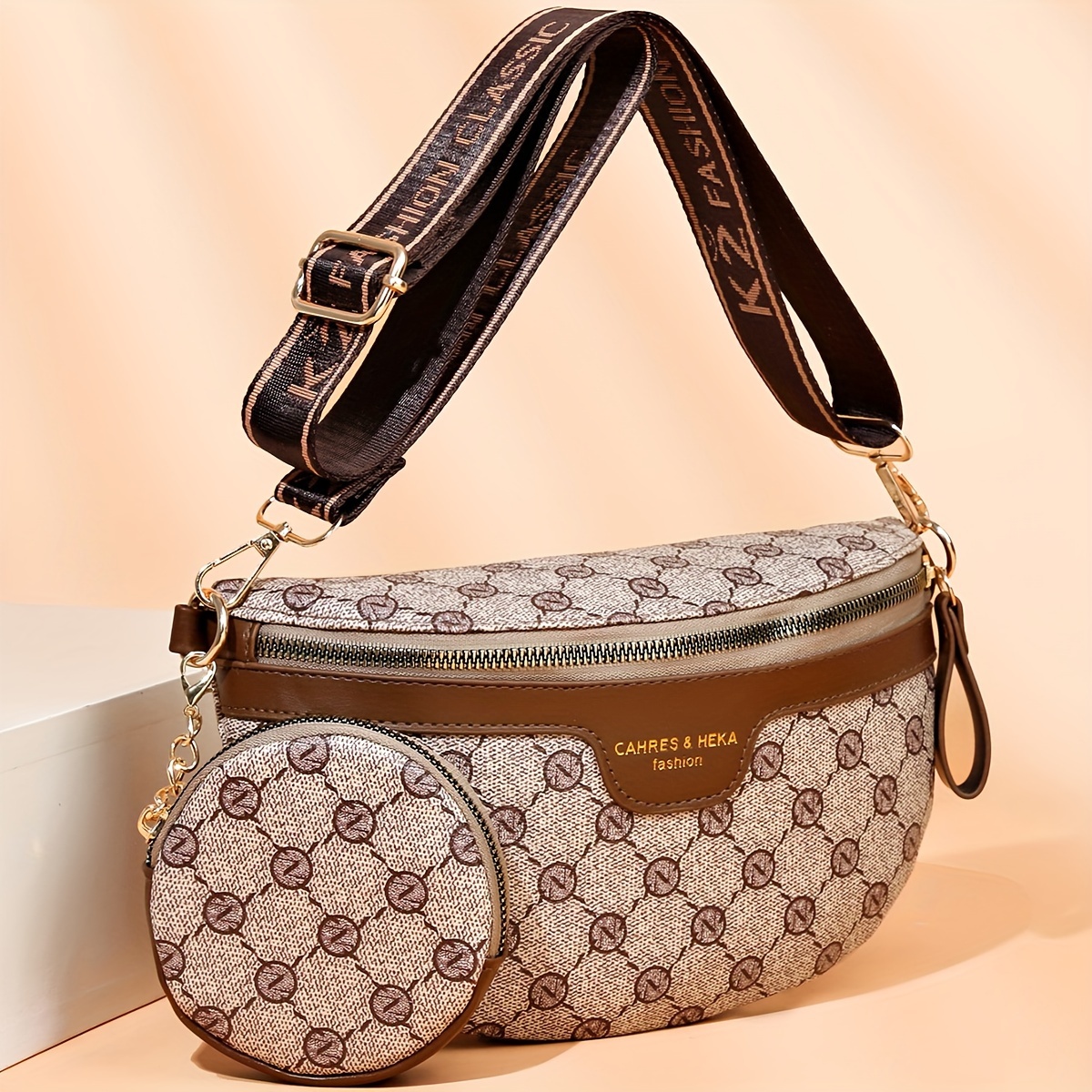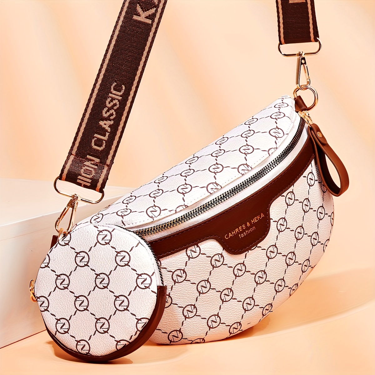 Classic Textured Crescent Crossbody Bag, Vintage Zipper Chest Bag With Round Mini Purse For Women