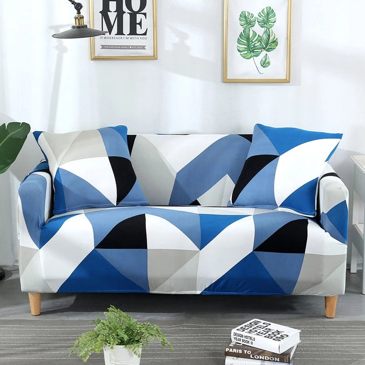 Blue / White Geometric Triangle Pattern Sofa Couch Cover