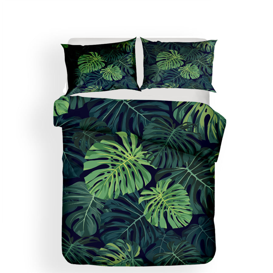 Dark Green 2/3-Piece Tropical Palm Leaf Print Duvet Cover Set