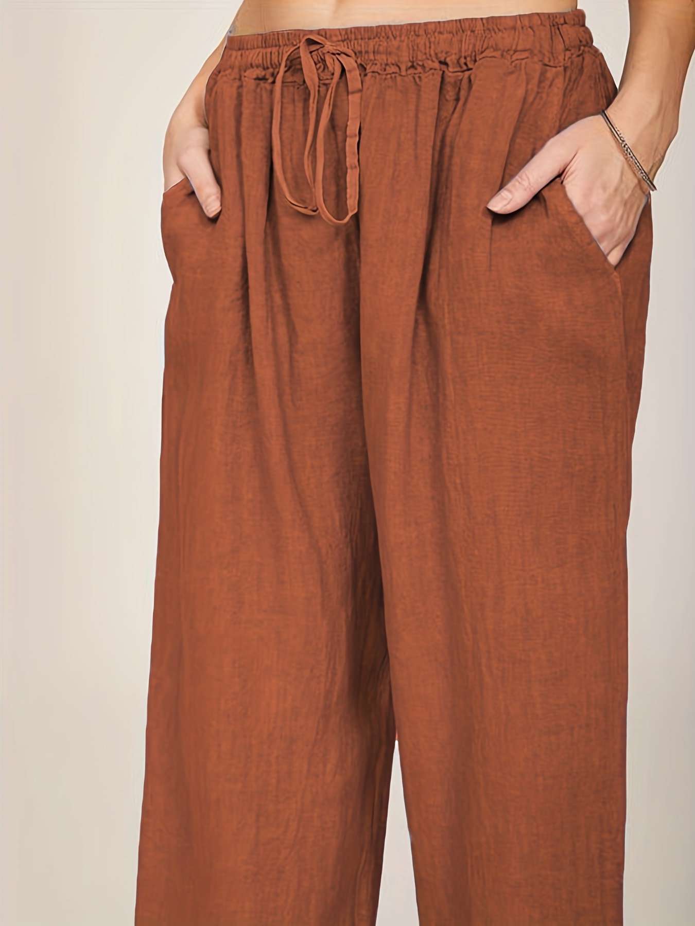 Drawstring Wide Leg Pants, Solid Loose Palazzo Pants, Casual Every Day Pants, Women’s Clothing