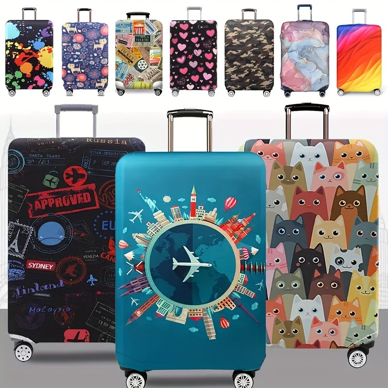 Elastic Luggage Cover With Cartoon Pattern, Travel Suitcase Cover, Trolley Duffle Case Travel Accessories