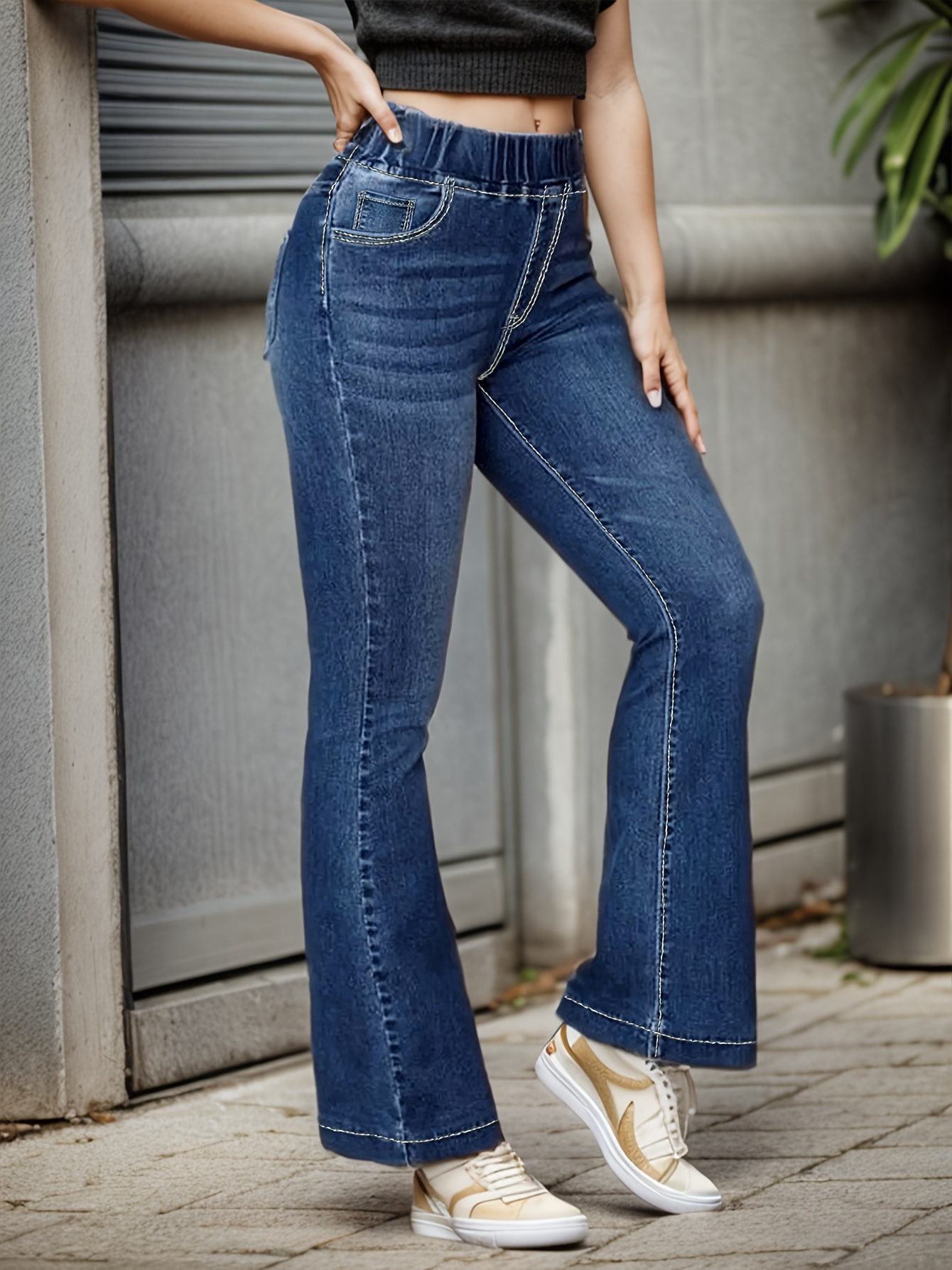 Be the first to review “Elastic Waist Bell Bottom Jeans, Slash Pocket Fashion Casual Denim Pants, Women’s Denim Jeans & Clothing” Cancel reply