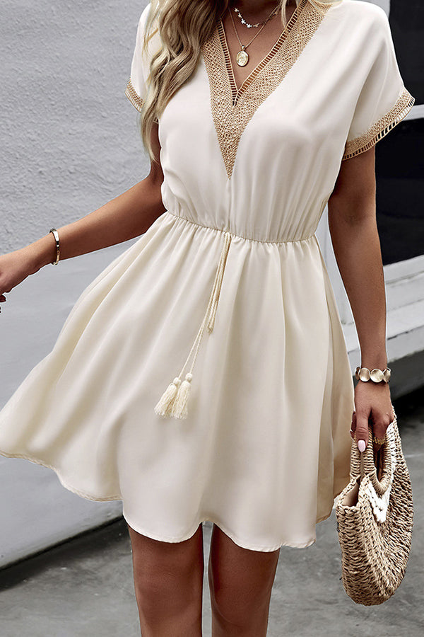 Fashion Lace Patchwork Solid V Neck Casual Dress