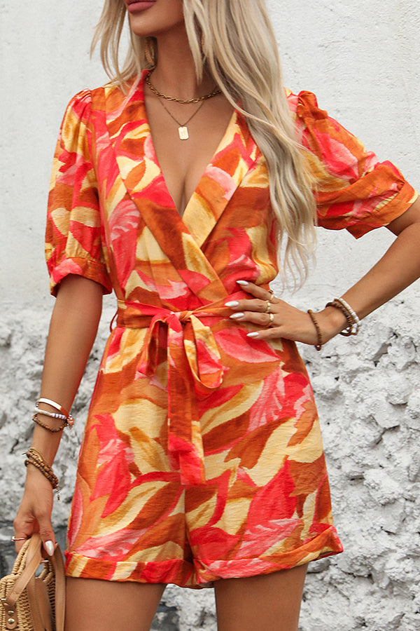 Fashion Printed Short Sleeve Casual Rompers