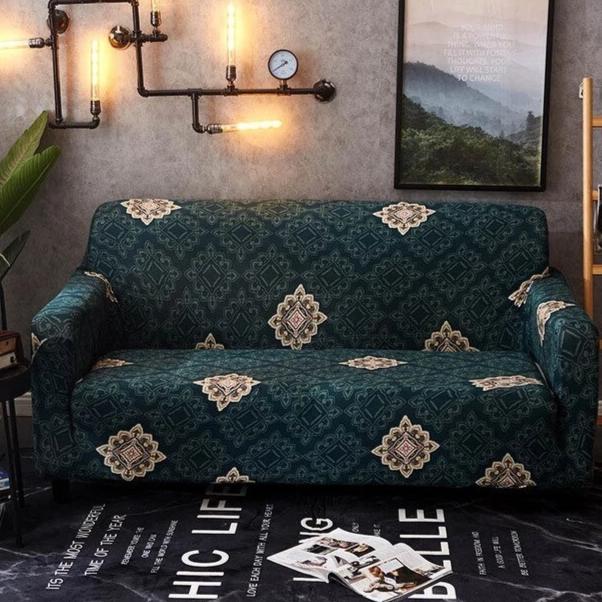 Dark Green Ethnic Medallion Pattern Sofa Couch Cover