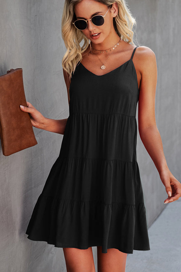 Fashion Solid Color Ruffle Hem Mini Dress